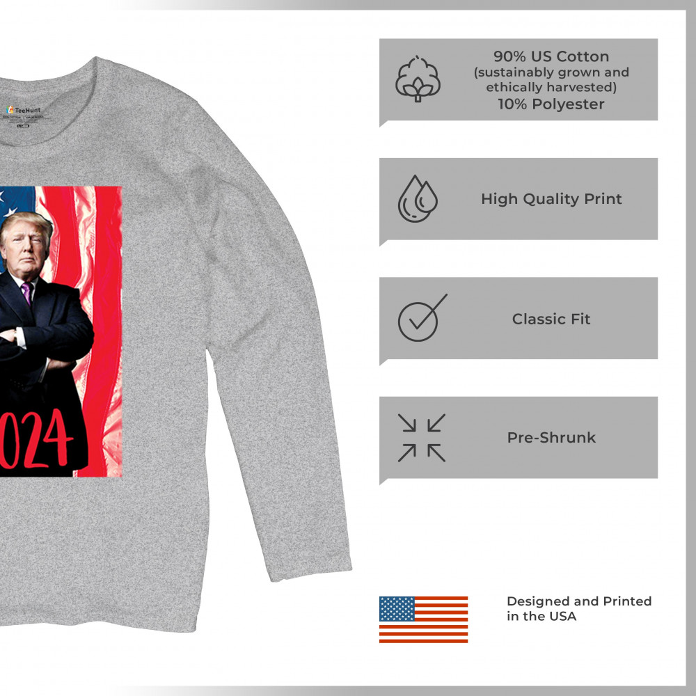 Stand proud with our Donald Trump 2024 design, a bold statement for America's future. Perfect for patriots and conservatives who champion victory, trust, and unity. Join the movement.