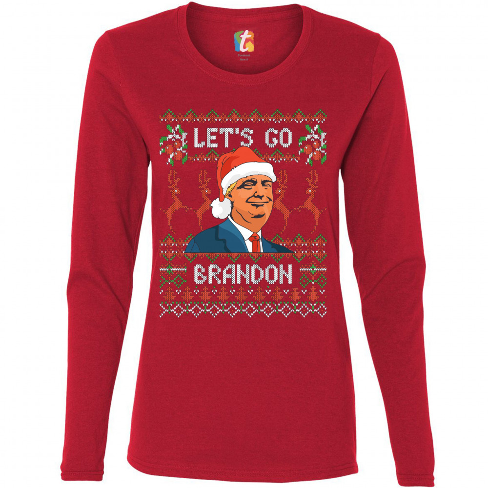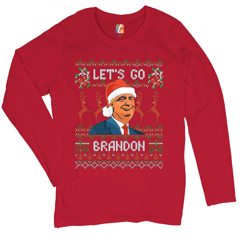 DONALD TRUMP LET'S GO BRANDON donald trump lets go brandon women's long sleeve t-shirt christmas ugly sweater red