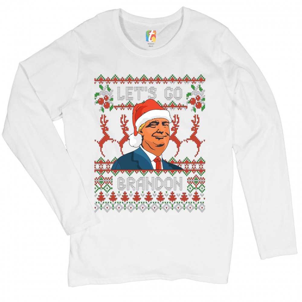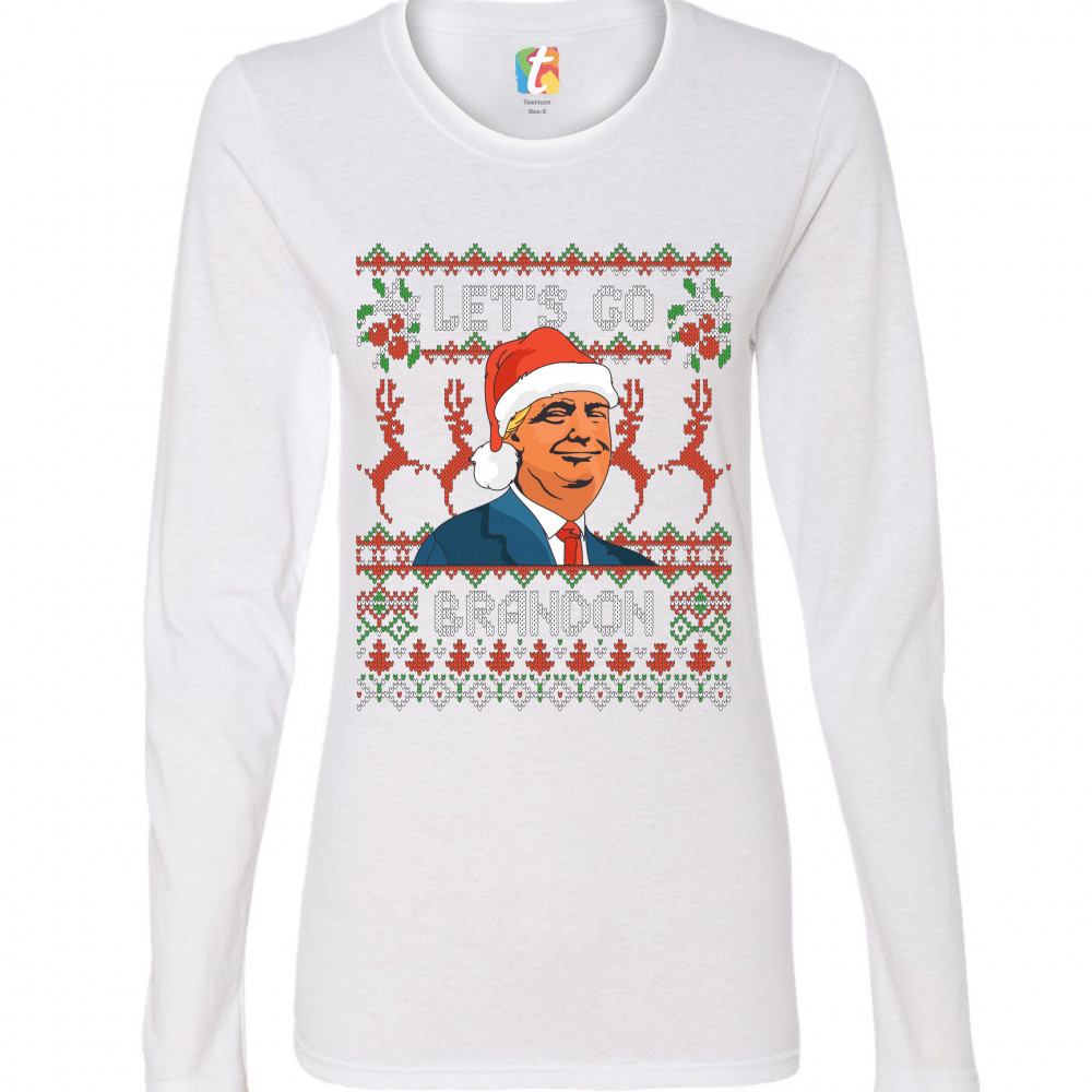 DONALD TRUMP LET'S GO BRANDON donald trump lets go brandon women's long sleeve t-shirt christmas ugly sweater white