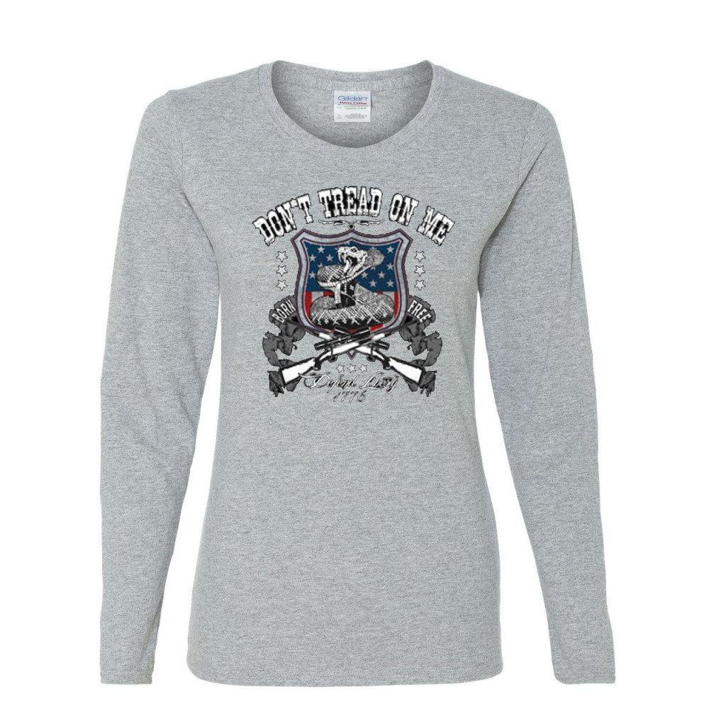 DON'T TREAD ON ME don’t tread on me long sleeve t-shirt defend liberty gadsden flag gray