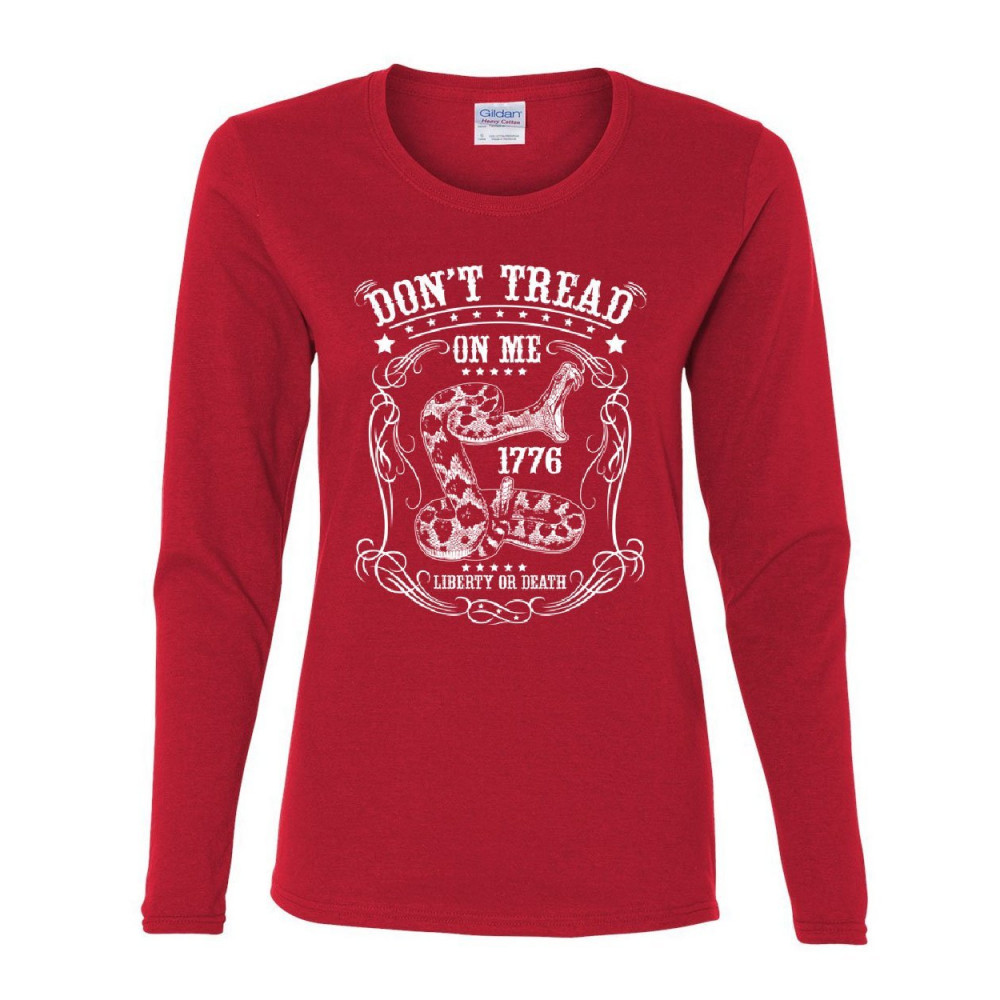 DON'T TREAD ON ME 1776 don't tread on me women's long sleeve tee liberty or death gadsden viper snake red
