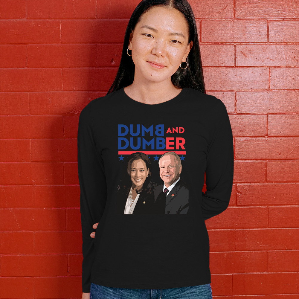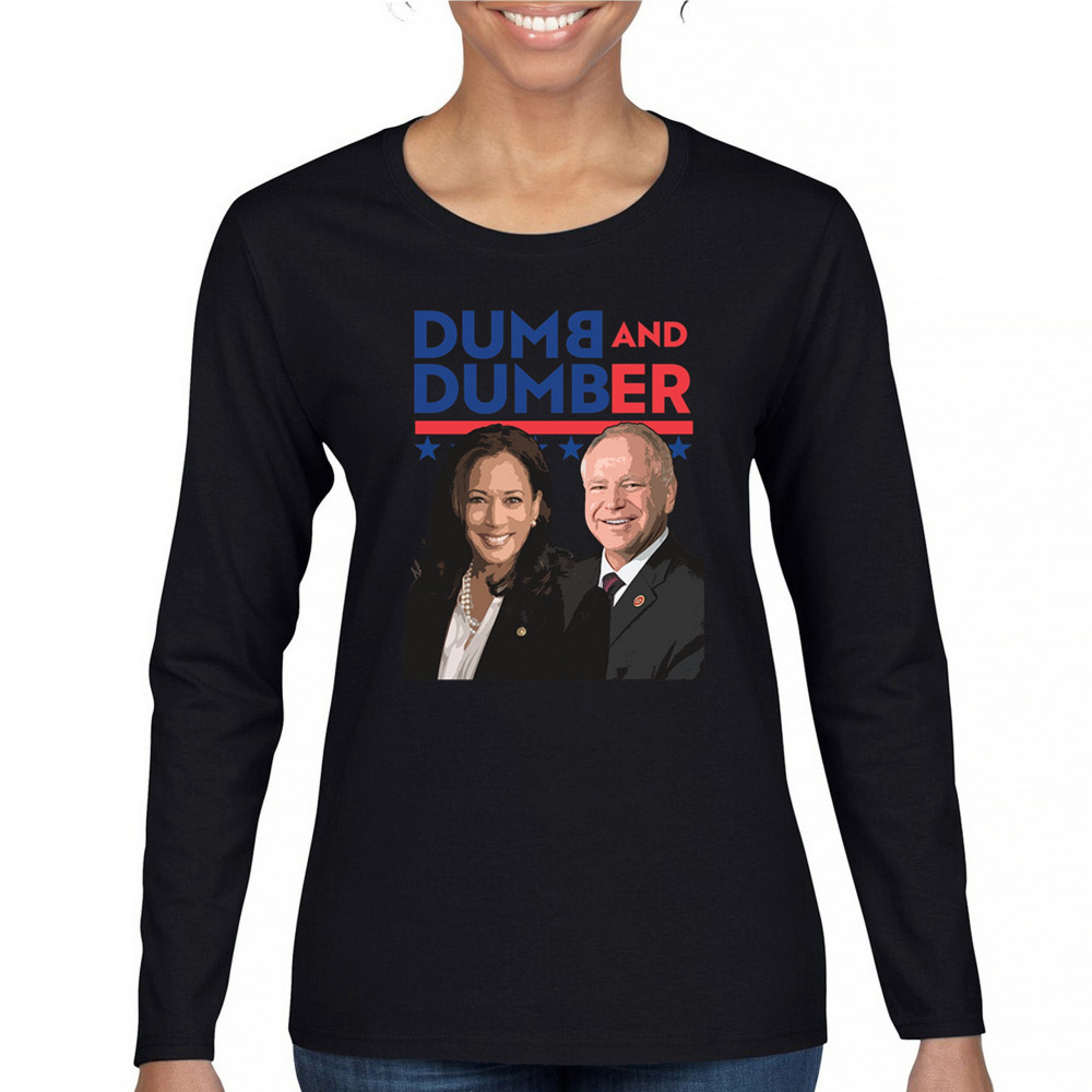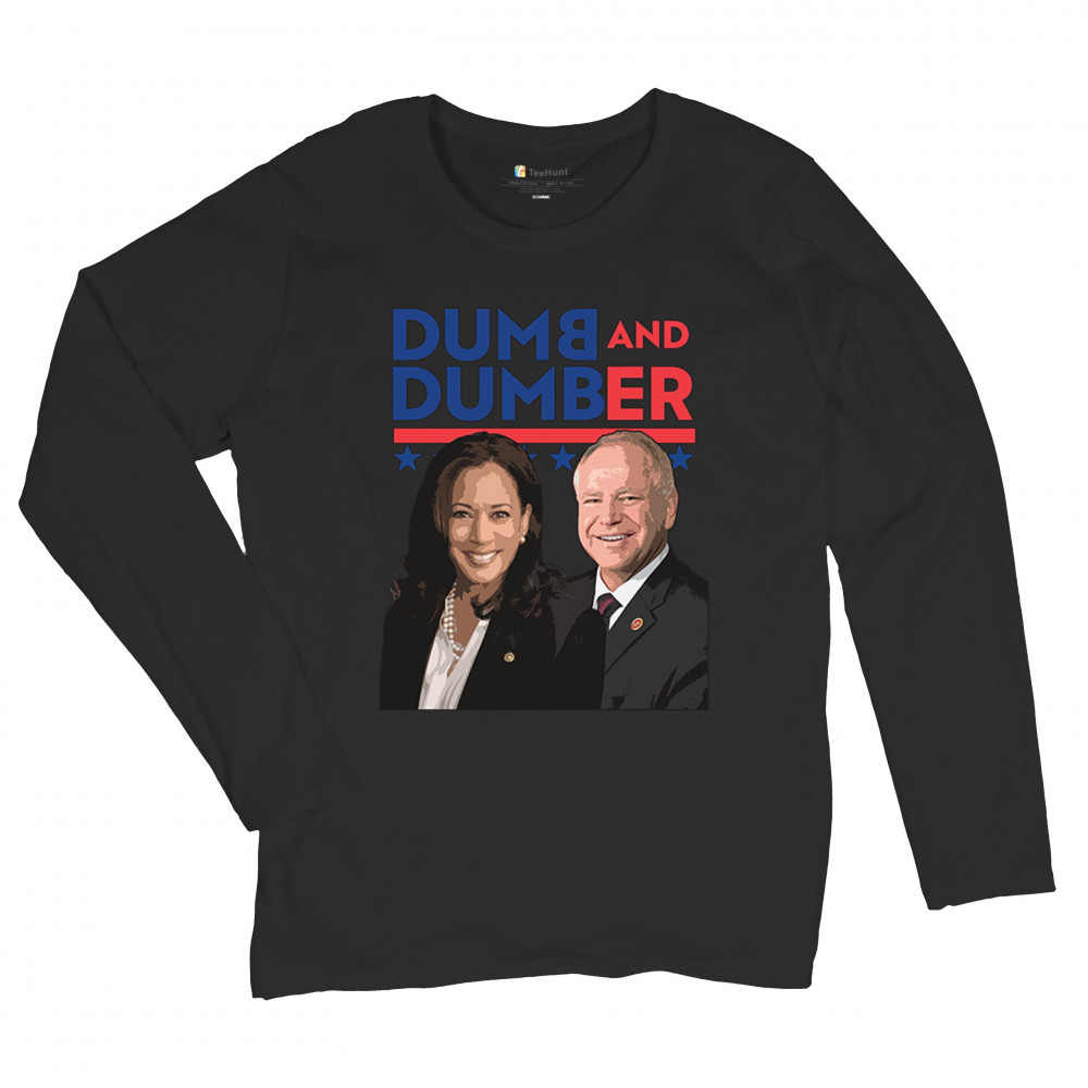 DUMB AND DUMBER ANTI KAMALA HARRIS TIM WALZ dumb and dumber anti harris walz women's long sleeve t-shirt trump 47 maga 2024 black