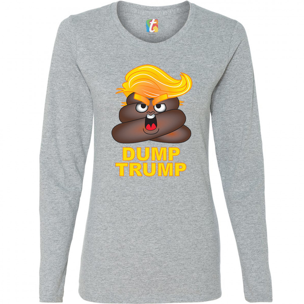 DUMP TRUMP women's long sleeve t-shirt anti trump funny poop turd 2020 election gray