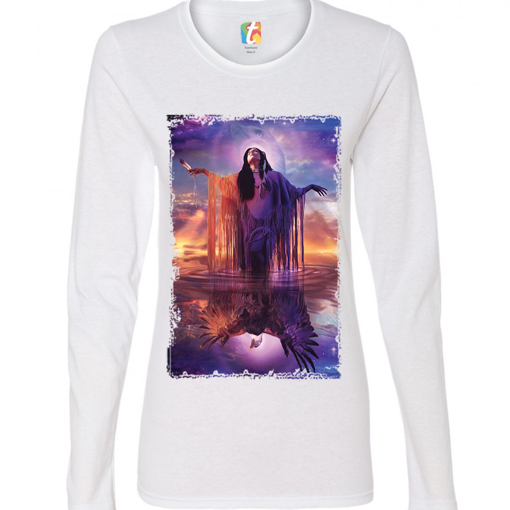 EAGLE SPIRIT women's long sleeve t-shirt native american shaman indigenous white