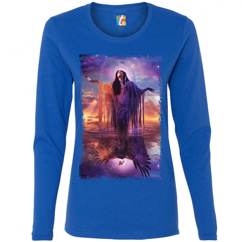 EAGLE SPIRIT women's long sleeve t-shirt native american shaman indigenous royal blue