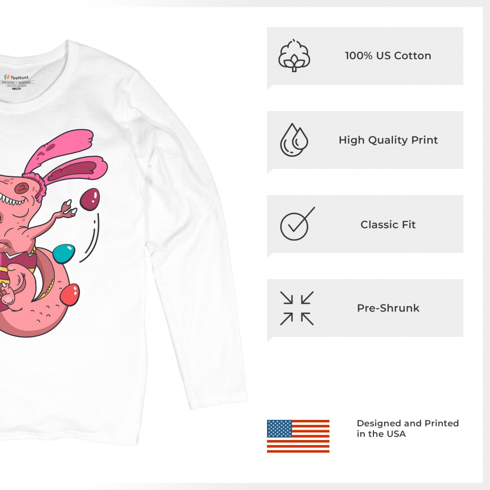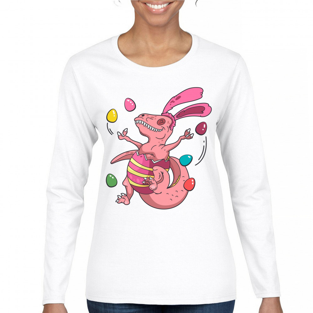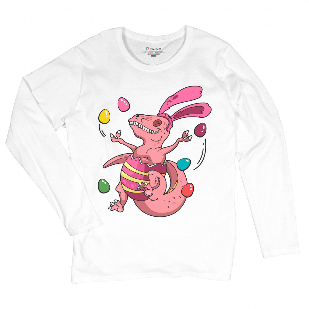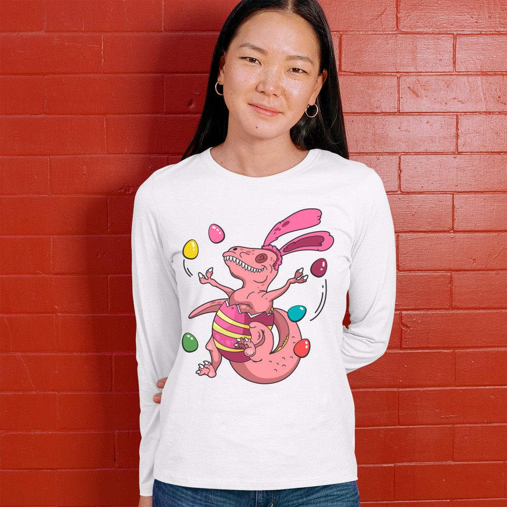 EASTER EGG T-REX women's long sleeve t-shirt easter bunny dinosaur egg hunt white