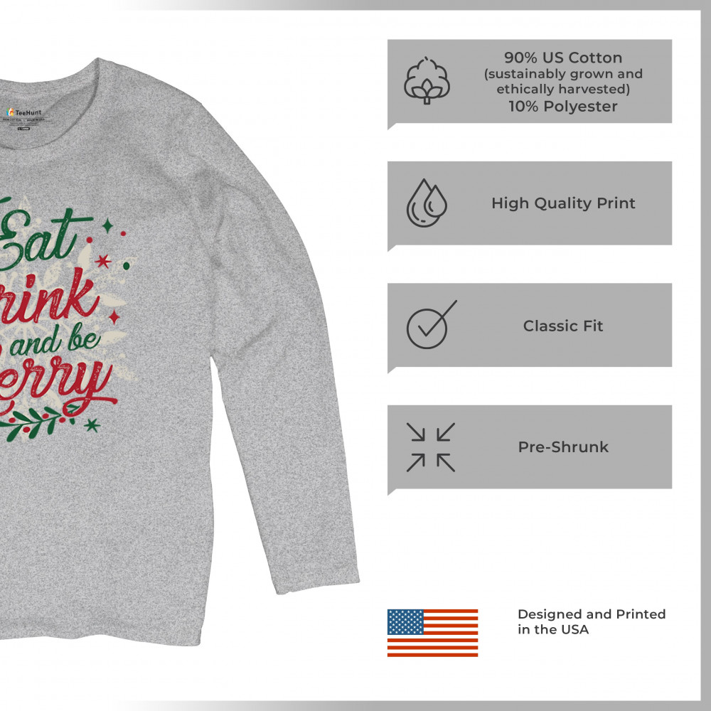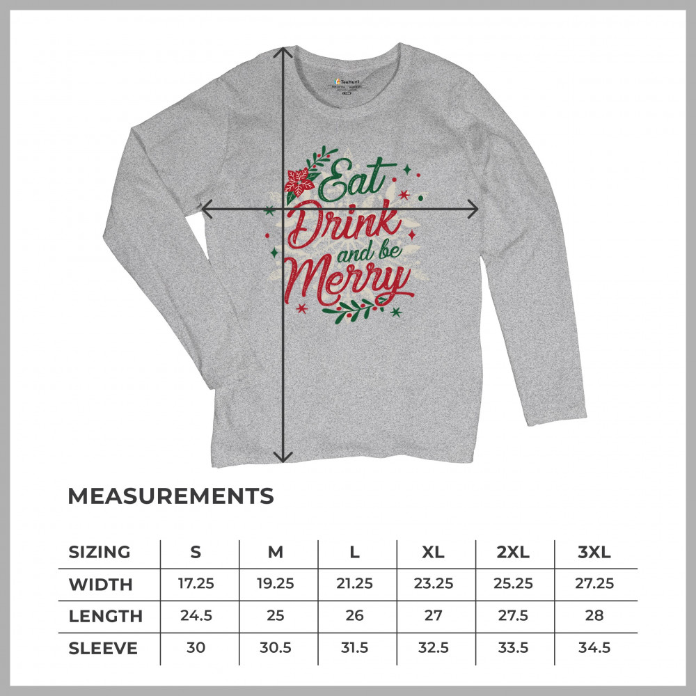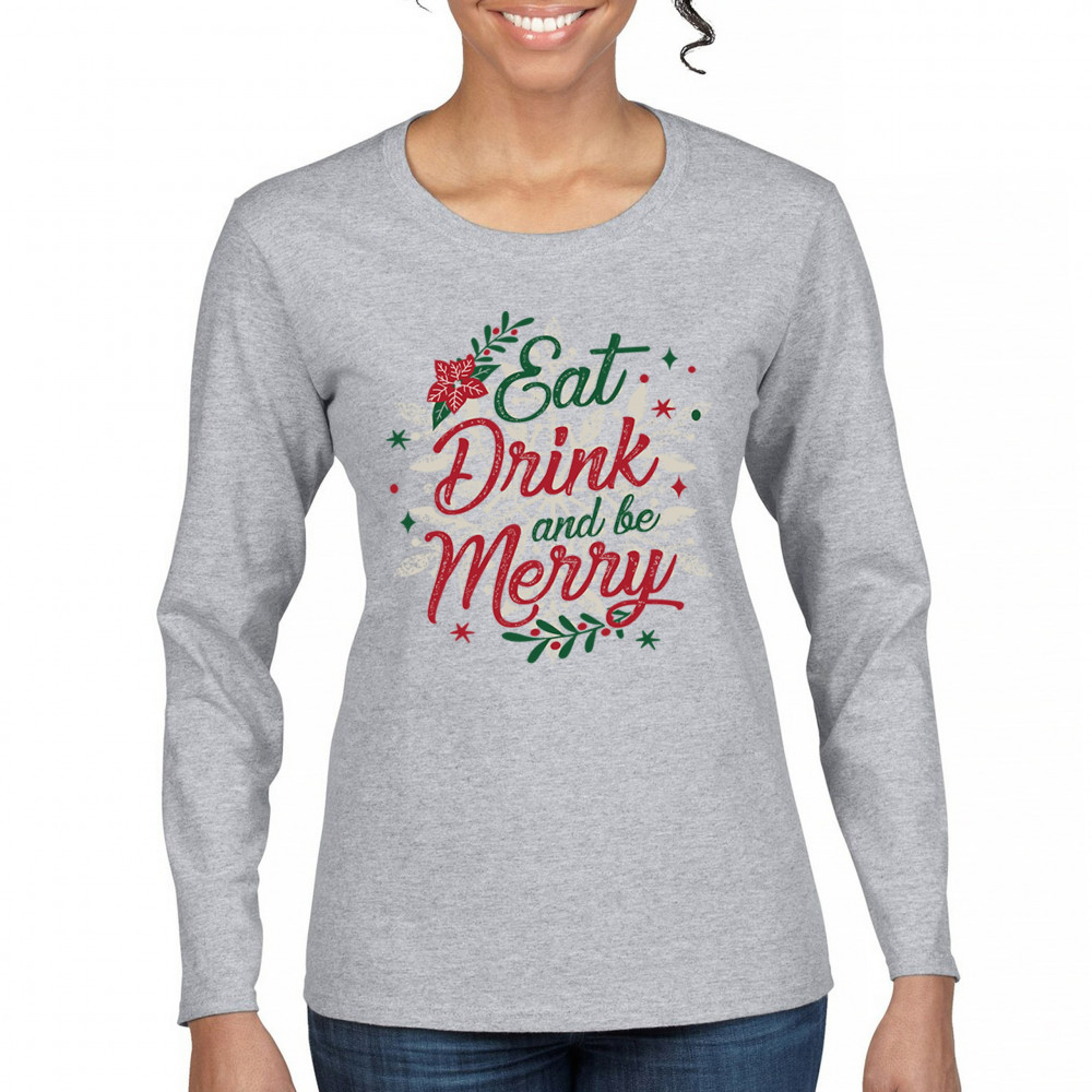 Bring the joy of the season with this "Eat, Drink, and Be Merry" design, crafted to make every holiday gathering a bit brighter. Ideal for cozy holiday mornings, family gatherings, Secret Santa gifts, or festive office parties, this piece captures the spirit of Christmas. Perfect for matching group sets or as a thoughtful holiday present, it’s designed in classic Christmas colors to complement the festive atmosphere. Let this design bring warmth and joy to your celebrations!