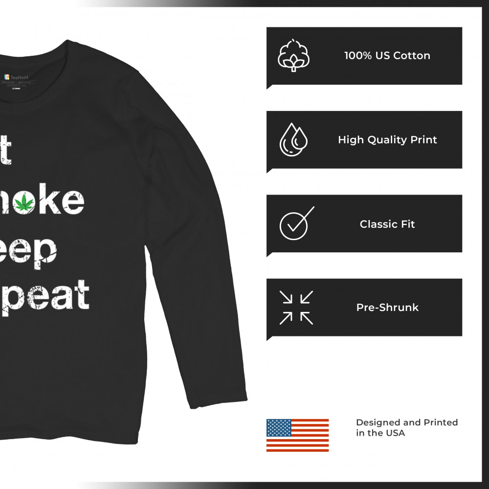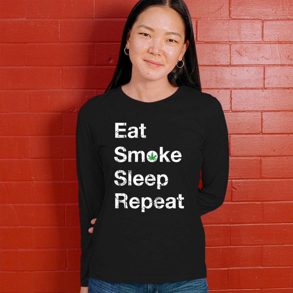 Eat Smoke Sleep Repeat design with weed leaf humor. Great for 420 fans, stoners, sesh lovers, smokers, and relaxed cannabis vibes.