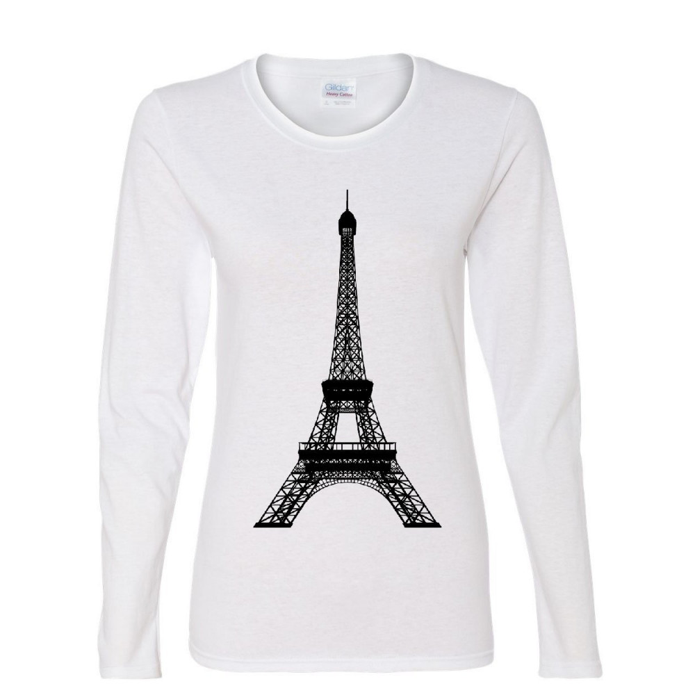 EIFFEL TOWER women's long sleeve tee paris france sightseeing travel europe white