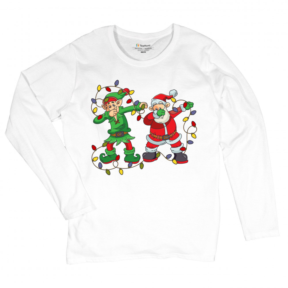 ELF AND SANTA CLAUS DAB DANCING women's long sleeve t-shirt merry christmas white
