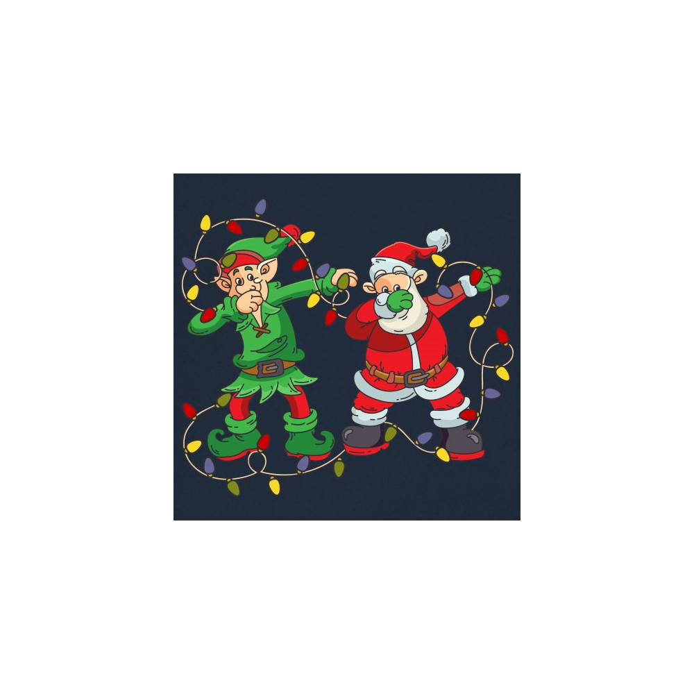 A funny print featuring an elf and Santa Claus dab dancing while surrounded by Christmas lights. Amazing choice to make people smile and spread positive vibes on Christmas Eve.