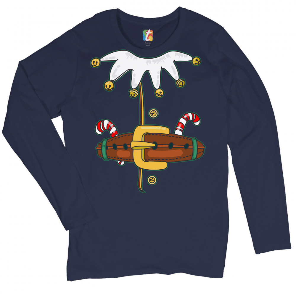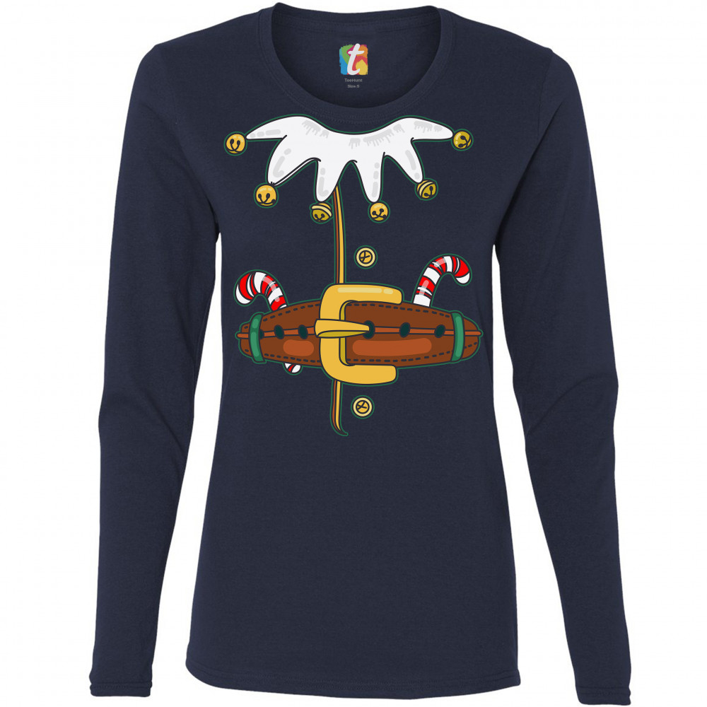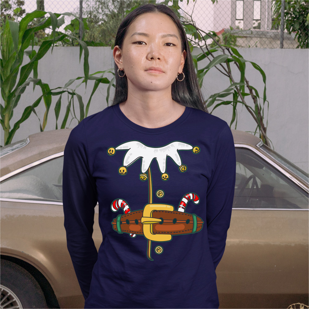ELF COSTUME women's long sleeve t-shirt merry christmas naughty or nice xmas navy blue