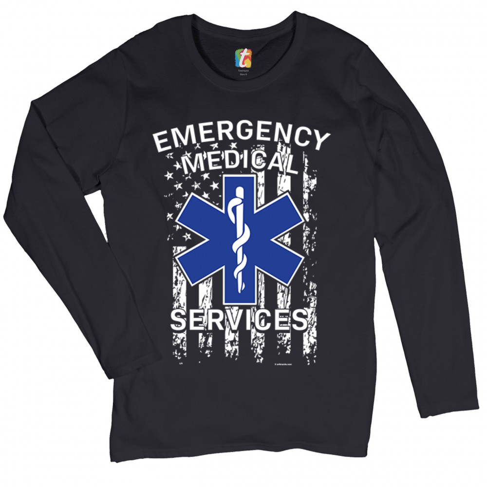 EMERGENCY MEDICAL SERVICES women's long sleeve t-shirt american flag ems emt black