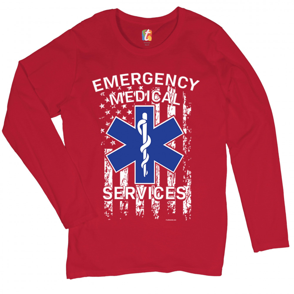 EMERGENCY MEDICAL SERVICES women's long sleeve t-shirt american flag ems emt red