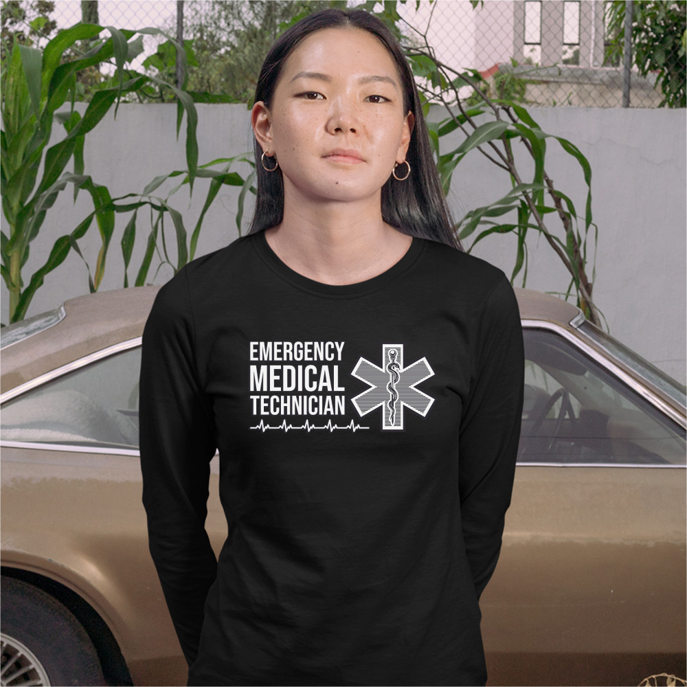 EMERGENCY MEDICAL TECHNICIAN women's long sleeve t-shirt emt first responder black