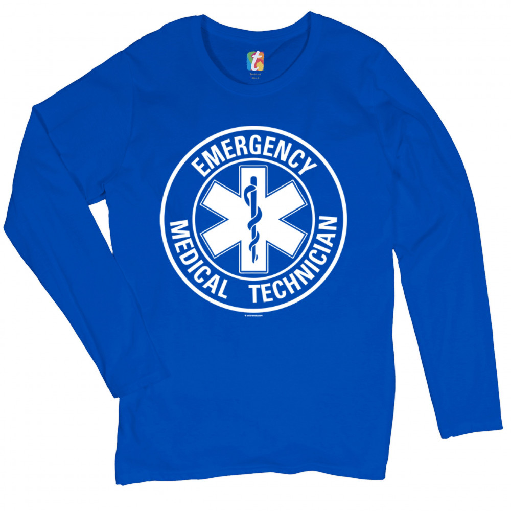 EMERGENCY MEDICAL TECHNICIAN women's long sleeve t-shirt star of life emt ems royal blue
