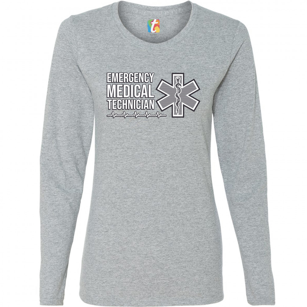 EMERGENCY MEDICAL TECHNICIAN women's long sleeve t-shirt emt first responder gray
