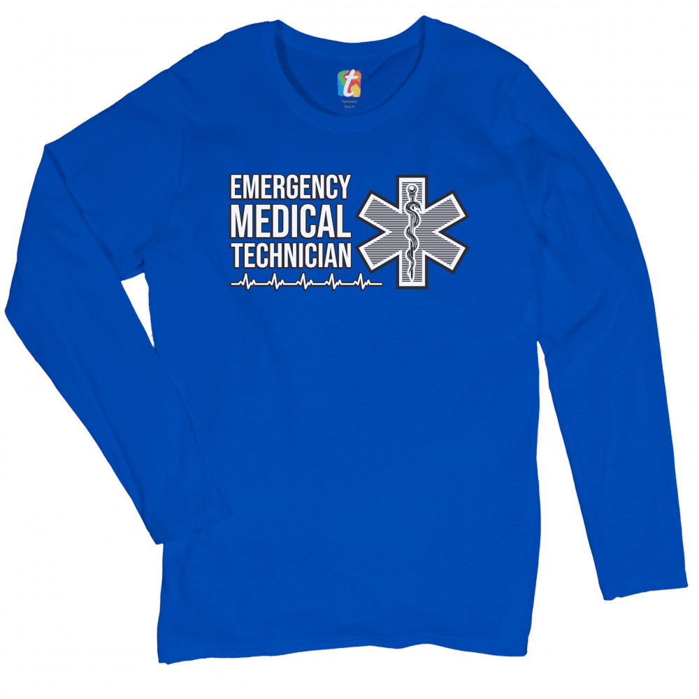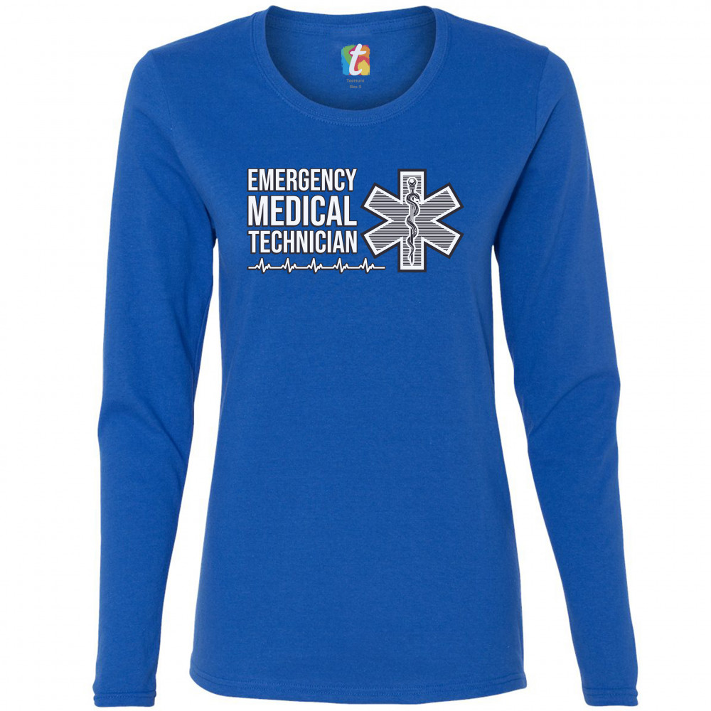 EMERGENCY MEDICAL TECHNICIAN women's long sleeve t-shirt emt first responder royal blue