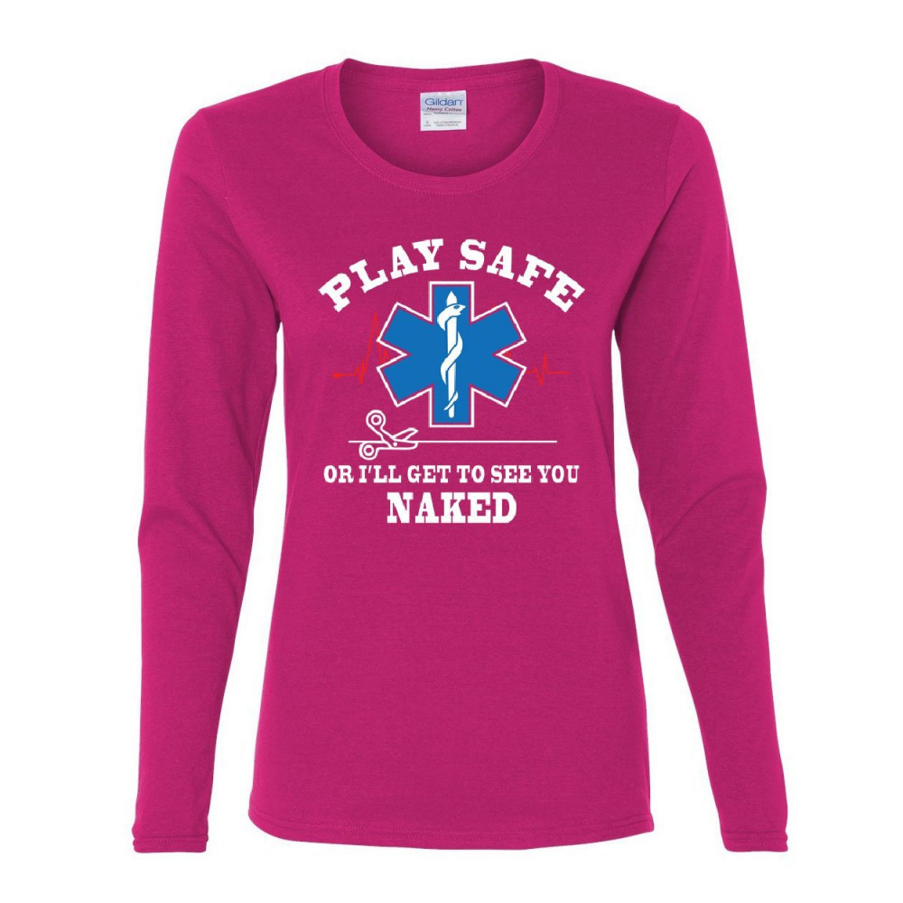 EMS PLAY SAFE OR I'LL GET TO SEE YOU NAKED women's long sleeve tee paramedic hot pink