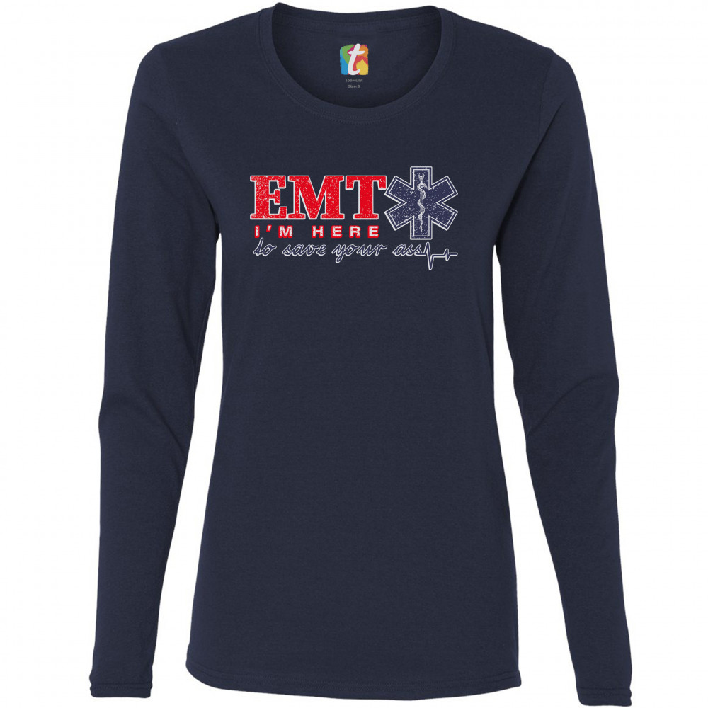 EMT I'M HERE TO SAVE YOUR ASS women's long sleeve t-shirt ems medical assistant navy blue