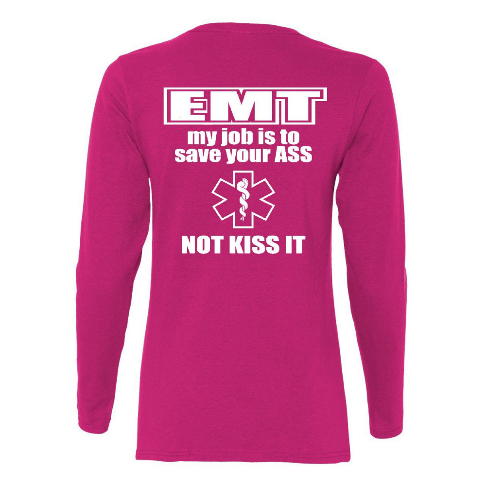 EMT MY JOB IS TO SAVE YOUR ASS long sleeve t-shirt funny medic pink