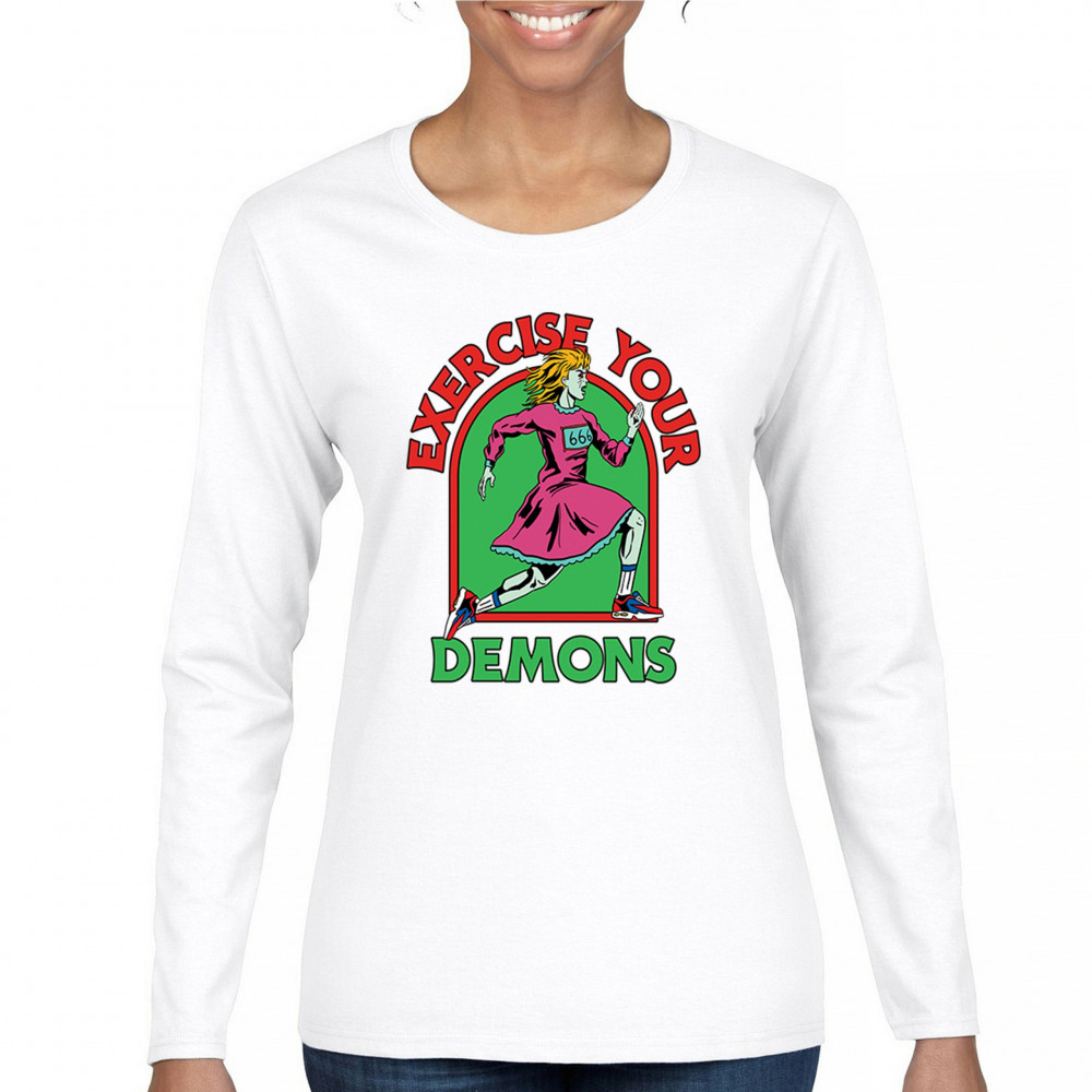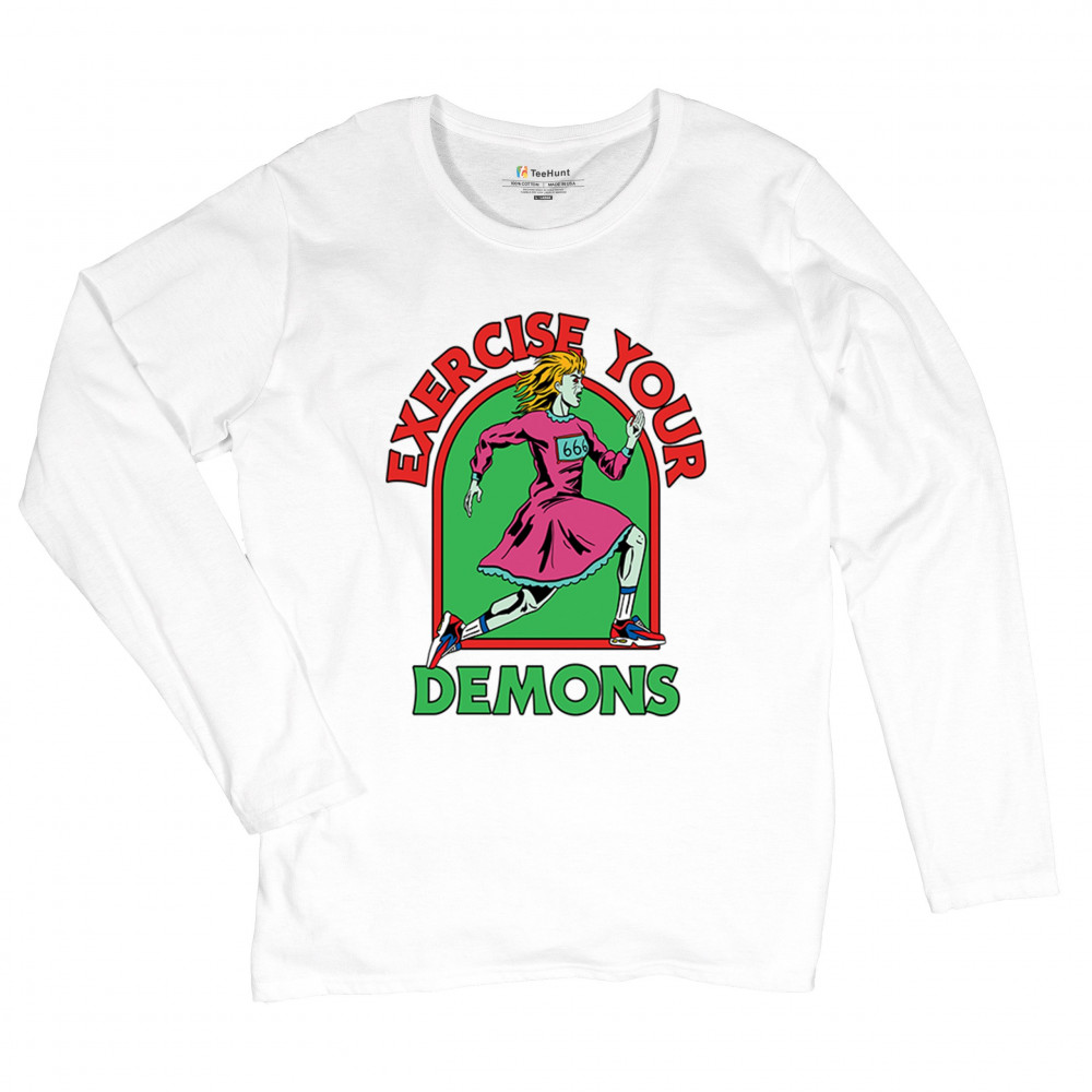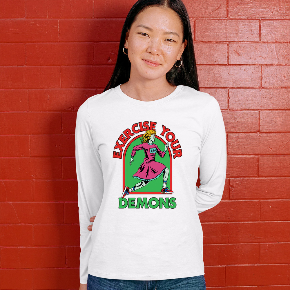 Exercise Your Demons shirt – funny halloween gym shirt with fitness humor, scary workout design, demon runner style, and spooky parody vibes.