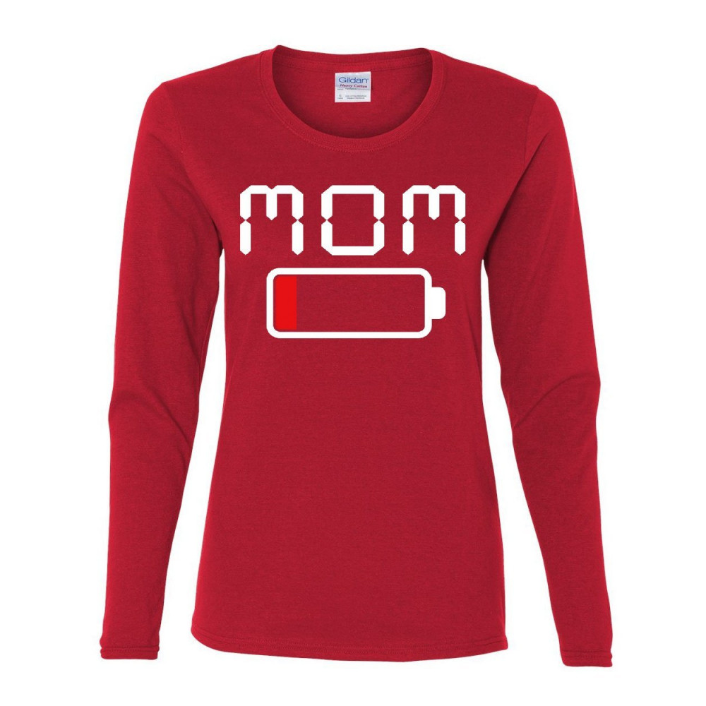 EXHAUSTED MOM LOW BATTERY women's long sleeve tee mother's day low energy coffee red