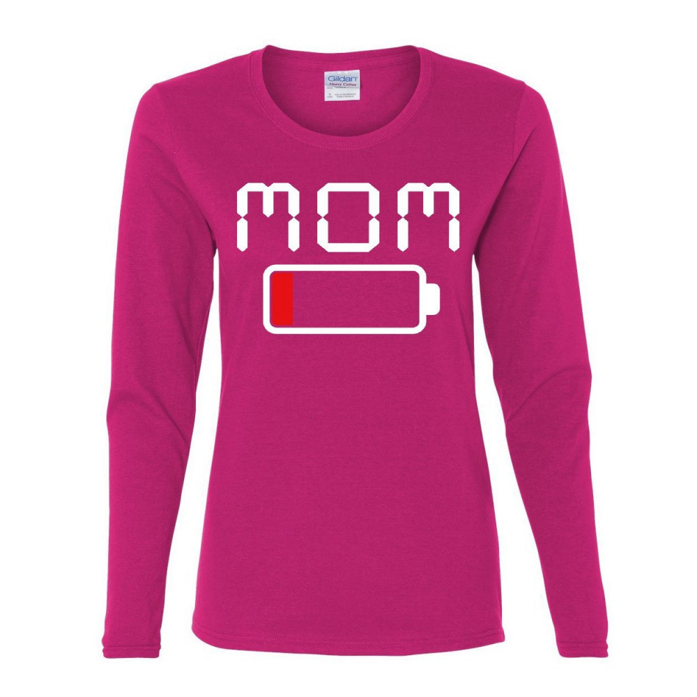 EXHAUSTED MOM LOW BATTERY women's long sleeve tee mother's day low energy coffee pink