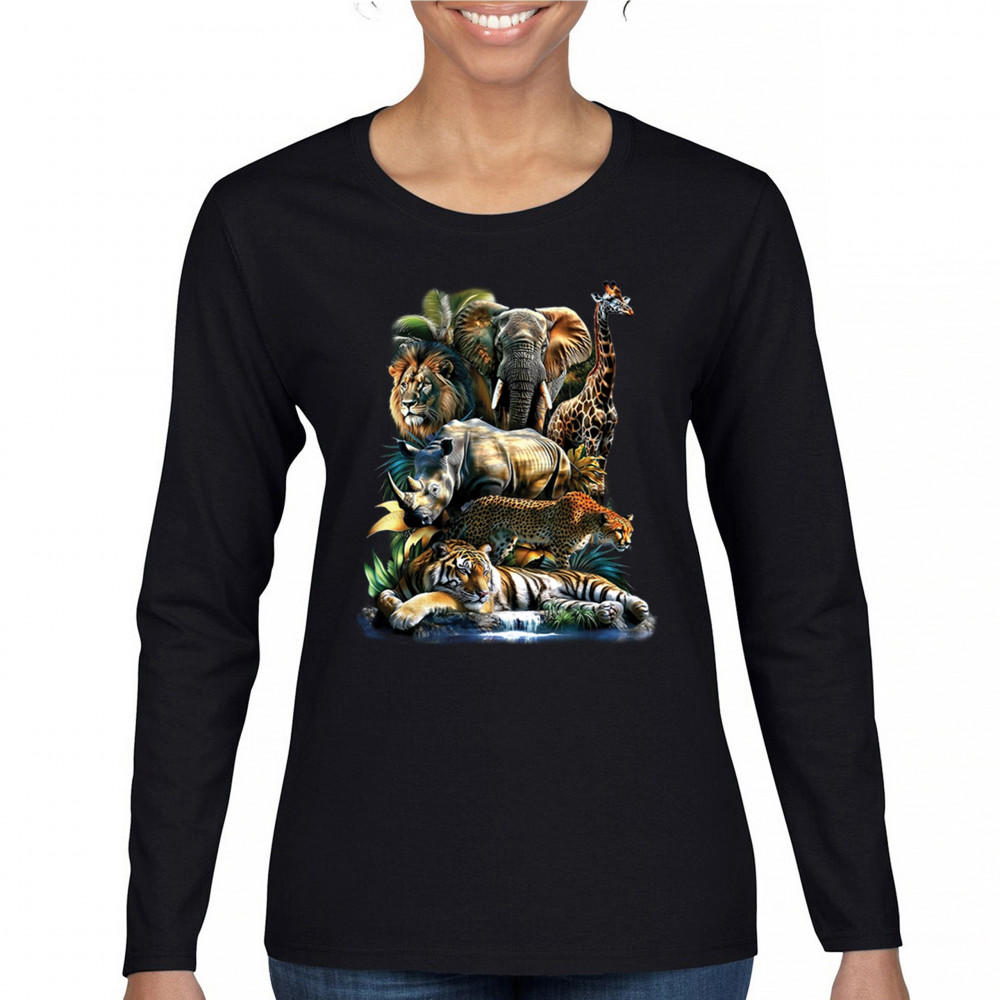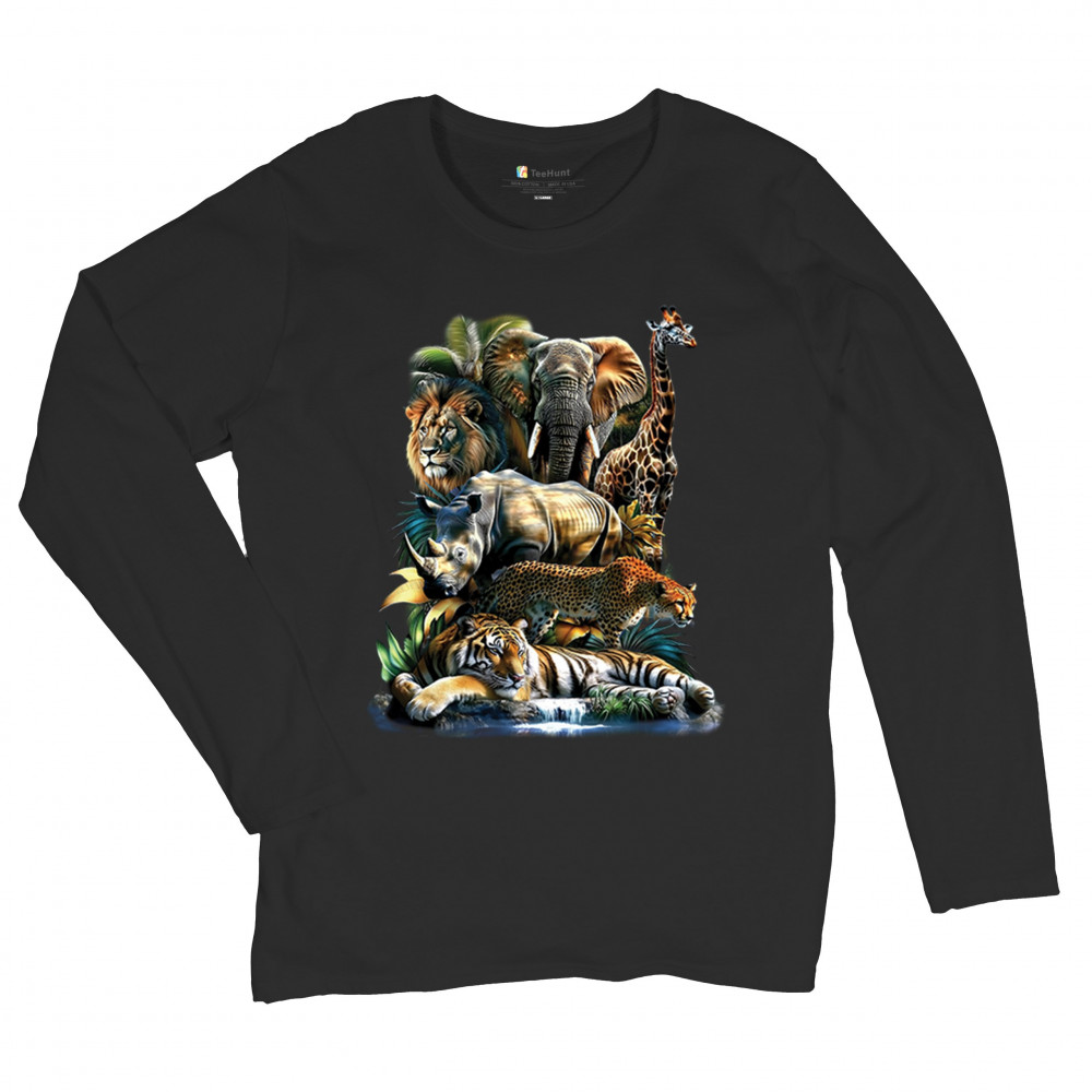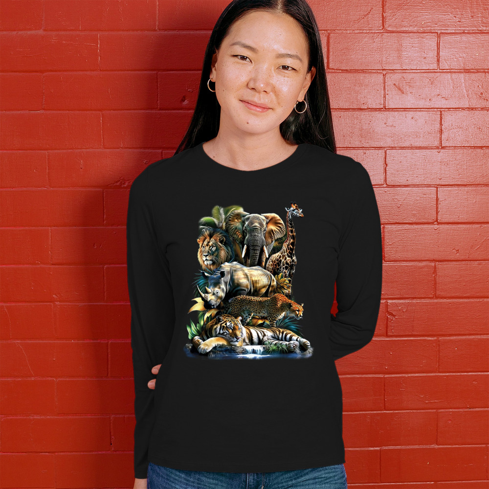 Wildlife design with lion, tiger, giraffe, rhino, cheetah, and elephant. Perfect for animal lovers and safari fans who embrace nature’s fierce spirit.