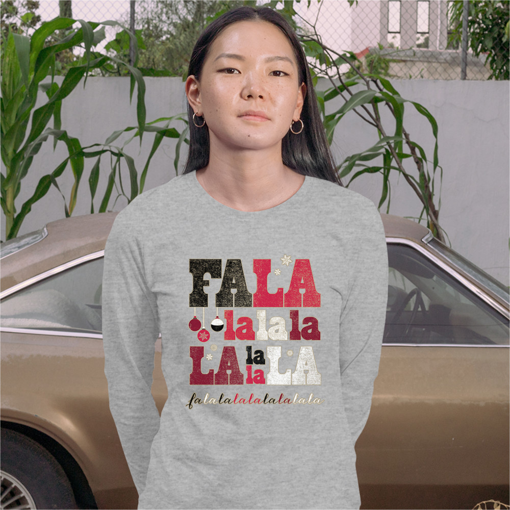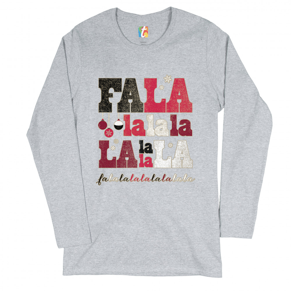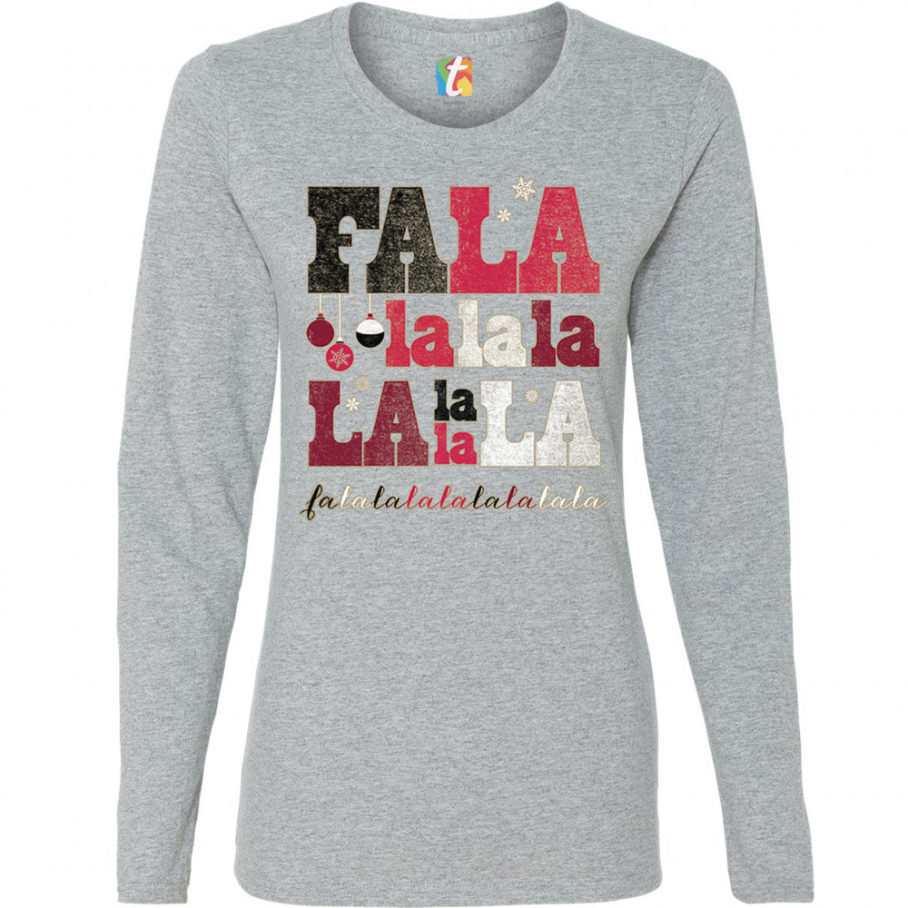 FA LA LA MERRY CHRISTMAS women's long sleeve t-shirt deck the halls christmas party gray