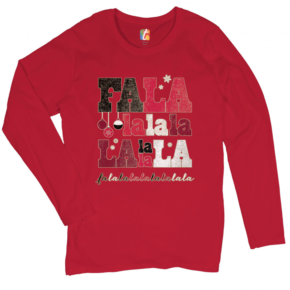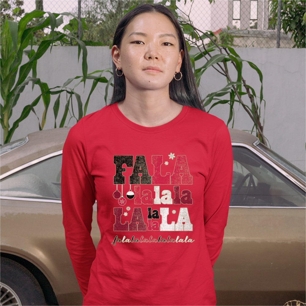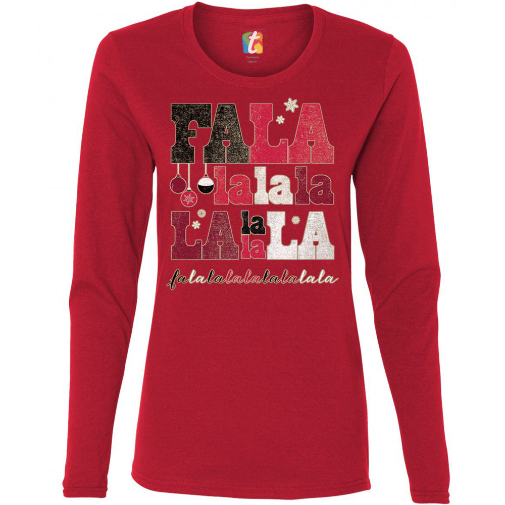 FA LA LA MERRY CHRISTMAS women's long sleeve t-shirt deck the halls christmas party red