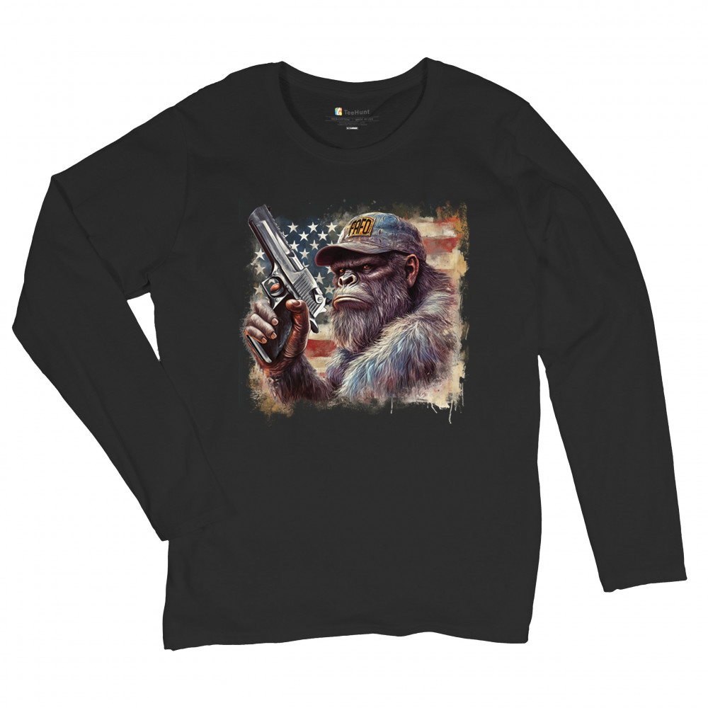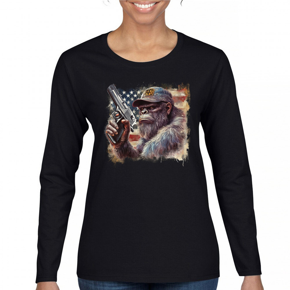 Show your Second Amendment pride with this bold patriotic gorilla design featuring the American flag and a firearm. Perfect for gun rights supporters, veterans, and freedom lovers.