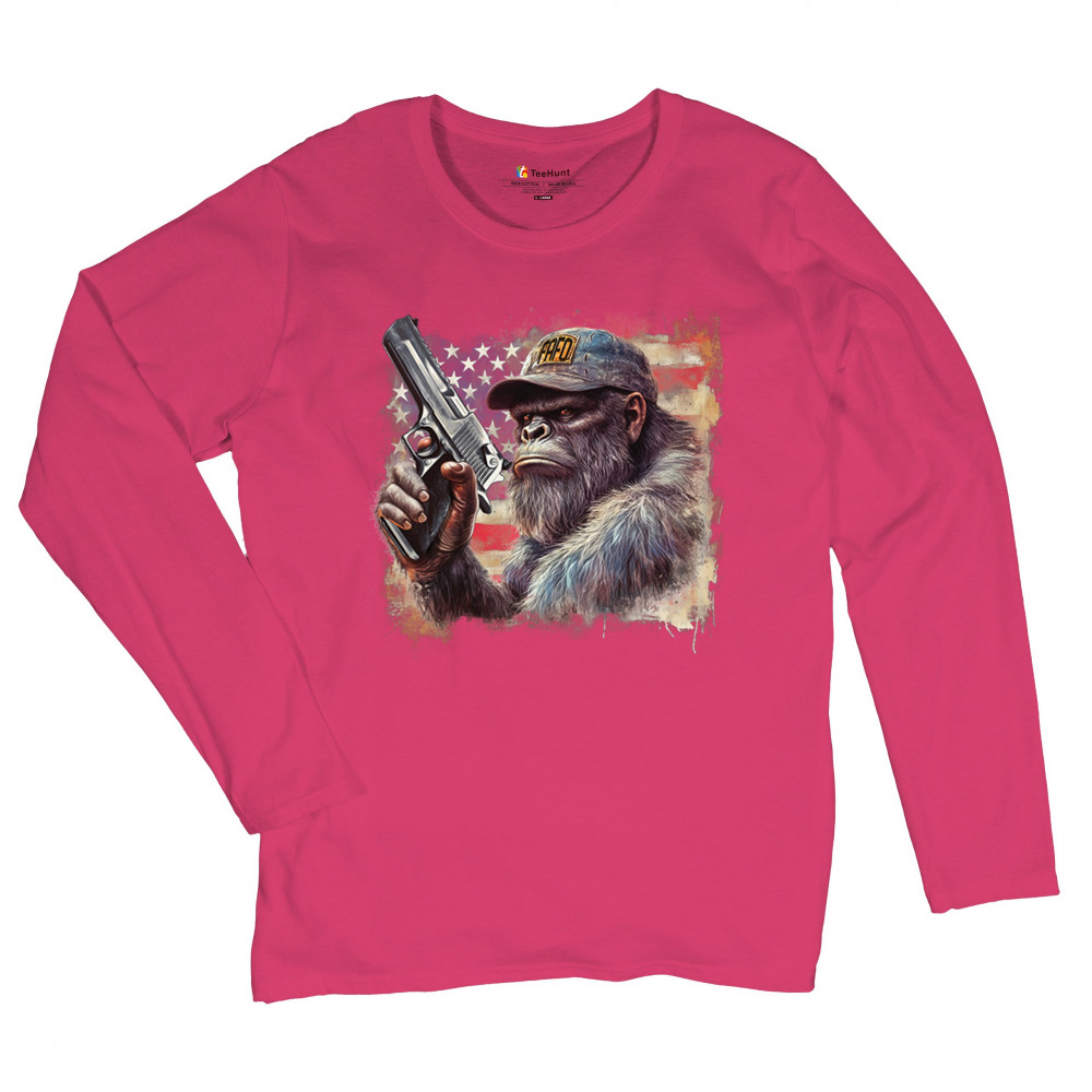 Show your Second Amendment pride with this bold patriotic gorilla design featuring the American flag and a firearm. Perfect for gun rights supporters, veterans, and freedom lovers.