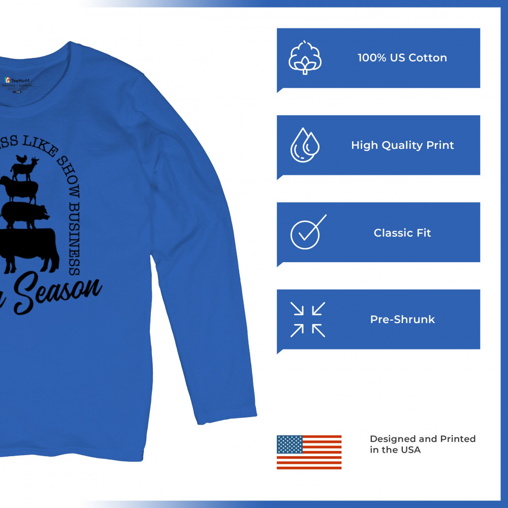 Embrace the spirit of fair season with our "Fair Season" design, ideal for anyone who loves farm animals and the excitement of fairs. Featuring silhouettes of a chicken, goat, sheep, and cow stacked together, this design brings a touch of whimsy and fun to any occasion. Perfect for 4-H members, farmers, and fair enthusiasts, it's a great way to express your love for agricultural fairs and farm life. This design makes an excellent gift, capturing the essence of show business and the joy of the fair season.