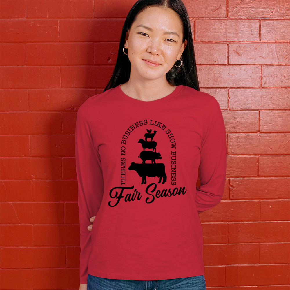 Embrace the spirit of fair season with our "Fair Season" design, ideal for anyone who loves farm animals and the excitement of fairs. Featuring silhouettes of a chicken, goat, sheep, and cow stacked together, this design brings a touch of whimsy and fun to any occasion. Perfect for 4-H members, farmers, and fair enthusiasts, it's a great way to express your love for agricultural fairs and farm life. This design makes an excellent gift, capturing the essence of show business and the joy of the fair season.