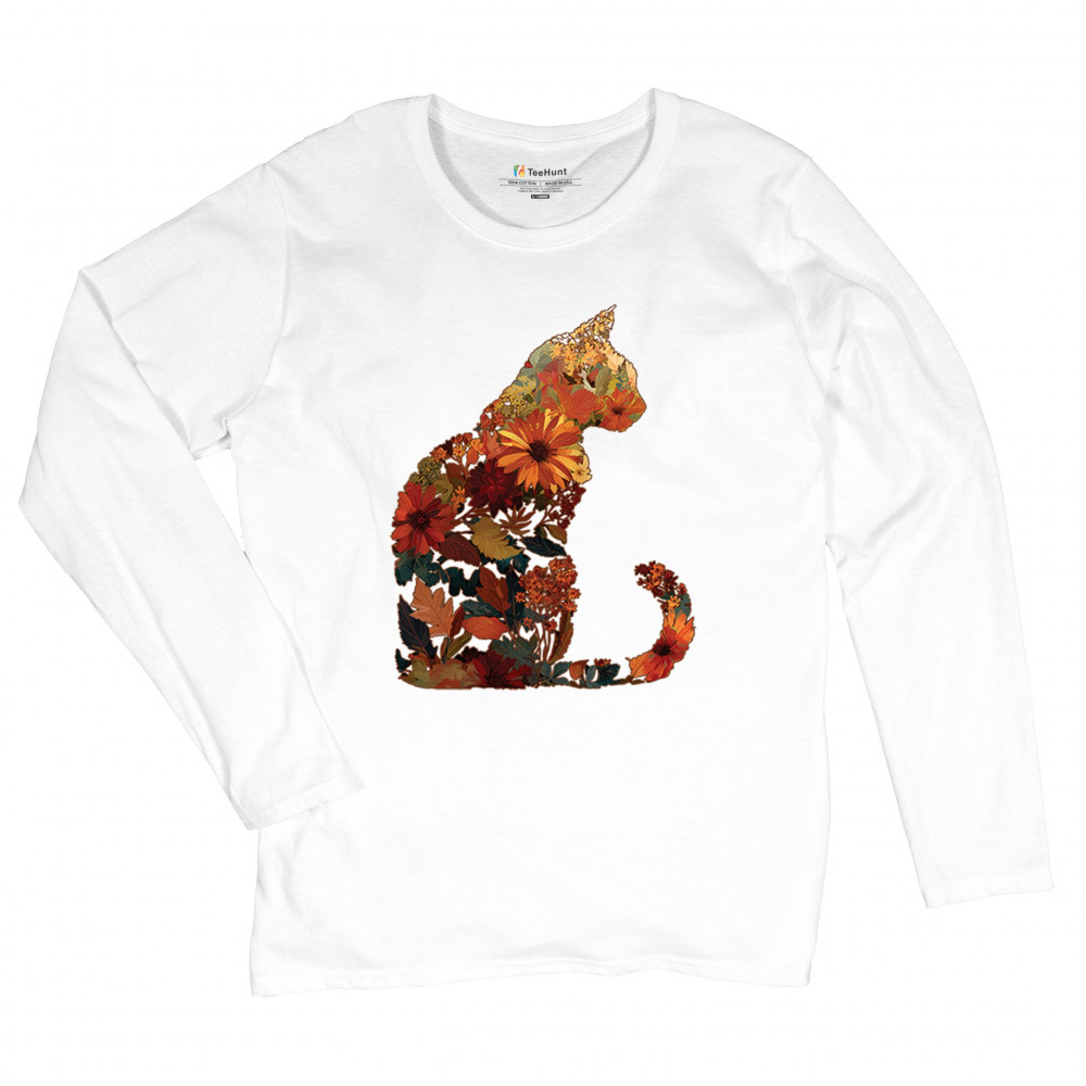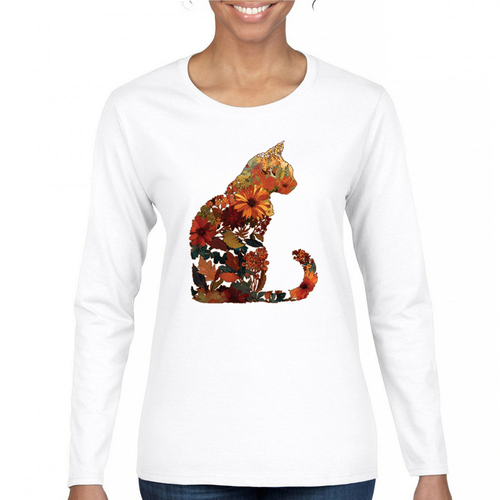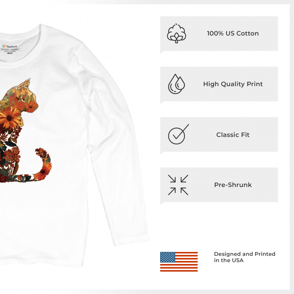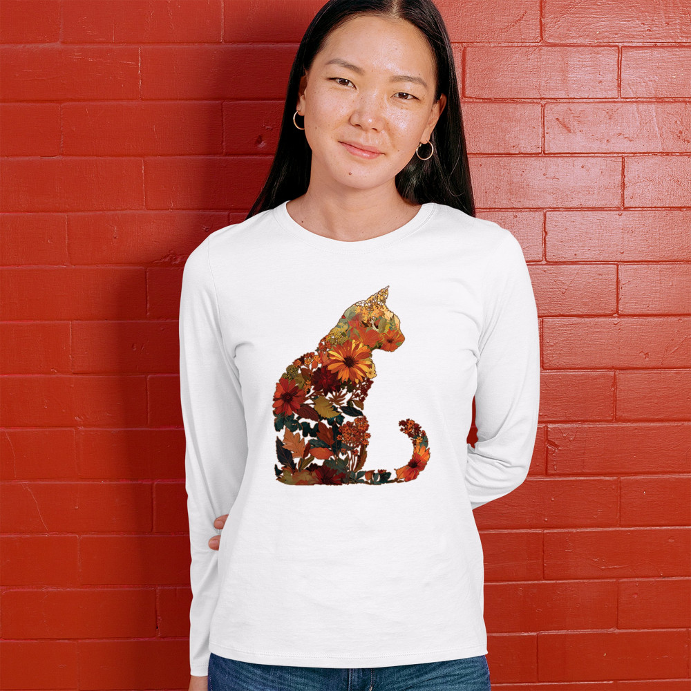 Bring autumn charm to your wardrobe with this cozy cat design filled with fall leaves and florals. Perfect for pet lovers, rustic farmhouse style, pumpkin patch outings, and fall festivals, it’s a unique way to showcase both your love of cats and seasonal harvest vibes.