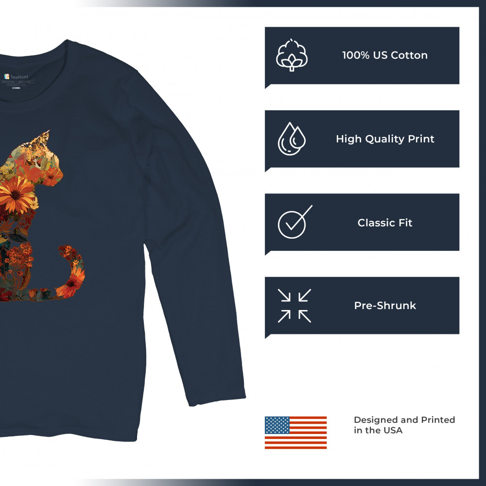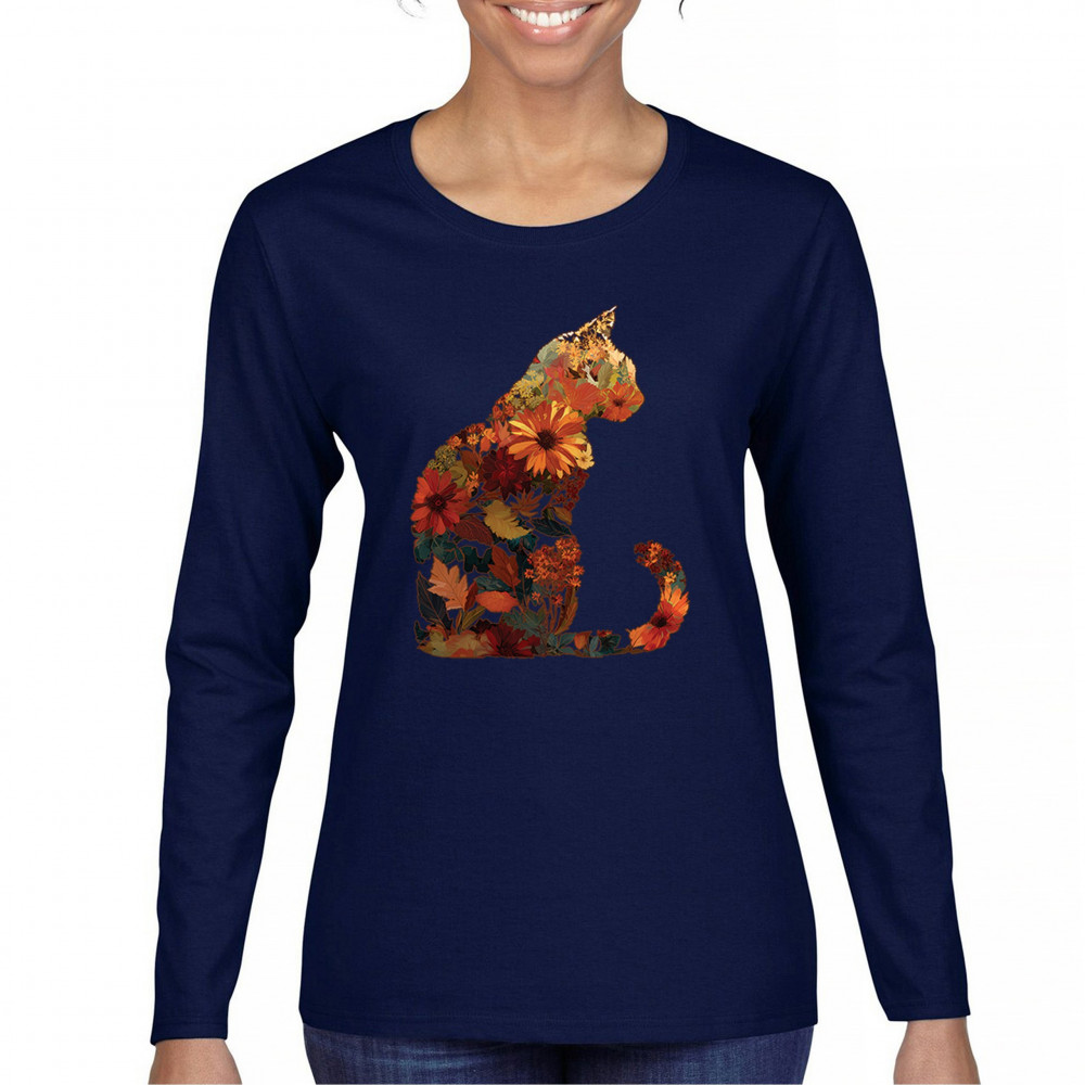 Bring autumn charm to your wardrobe with this cozy cat design filled with fall leaves and florals. Perfect for pet lovers, rustic farmhouse style, pumpkin patch outings, and fall festivals, it’s a unique way to showcase both your love of cats and seasonal harvest vibes.