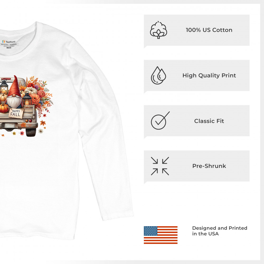 Bring fall charm into your wardrobe with this rustic gnome truck design. Overflowing with pumpkins, wildflowers, and a glowing lantern, it’s perfect for Thanksgiving, farmhouse gatherings, harvest festivals, and celebrating the floral autumn season in cozy style.