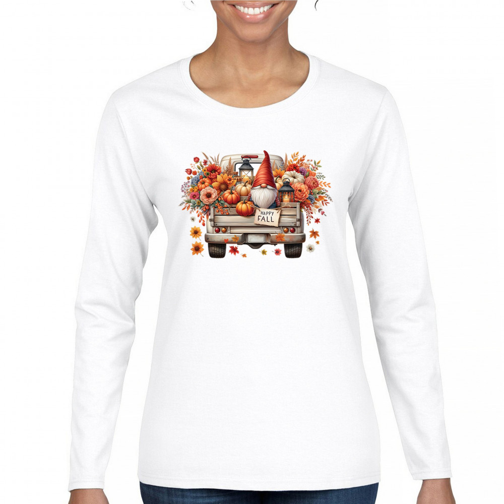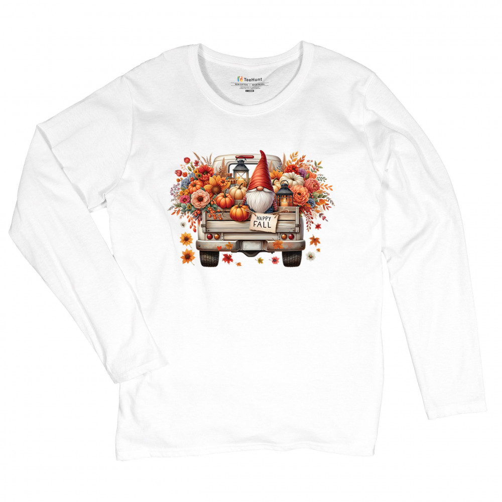 Rustic gnome truck design with pumpkins, wildflowers, and lantern glow. Perfect for Thanksgiving Day, farmhouse harvest, and cozy autumn style.