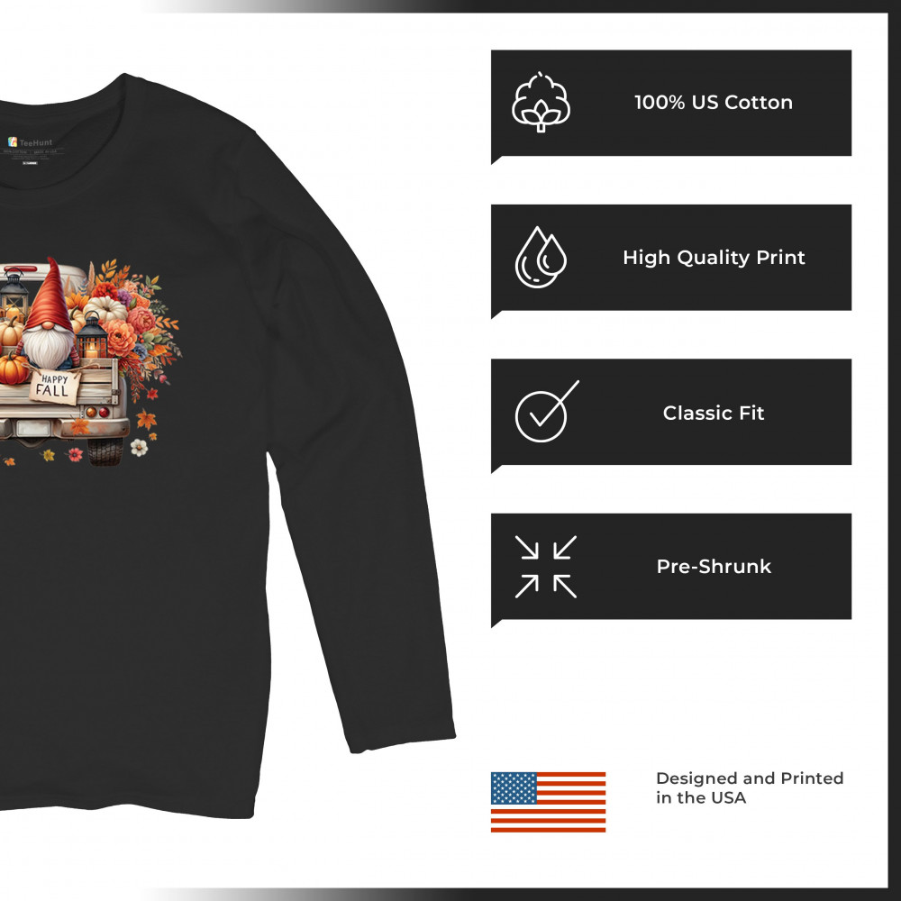Bring fall charm into your wardrobe with this rustic gnome truck design. Overflowing with pumpkins, wildflowers, and a glowing lantern, it’s perfect for Thanksgiving, farmhouse gatherings, harvest festivals, and celebrating the floral autumn season in cozy style.