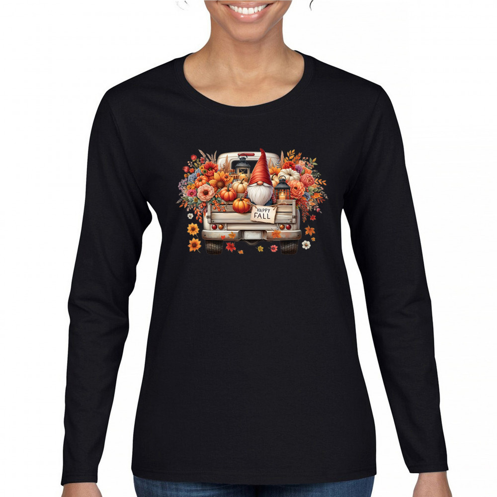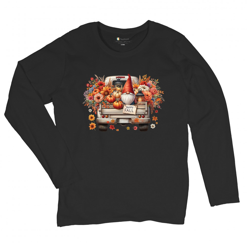 Rustic gnome truck design with pumpkins, wildflowers, and lantern glow. Perfect for Thanksgiving Day, farmhouse harvest, and cozy autumn style.