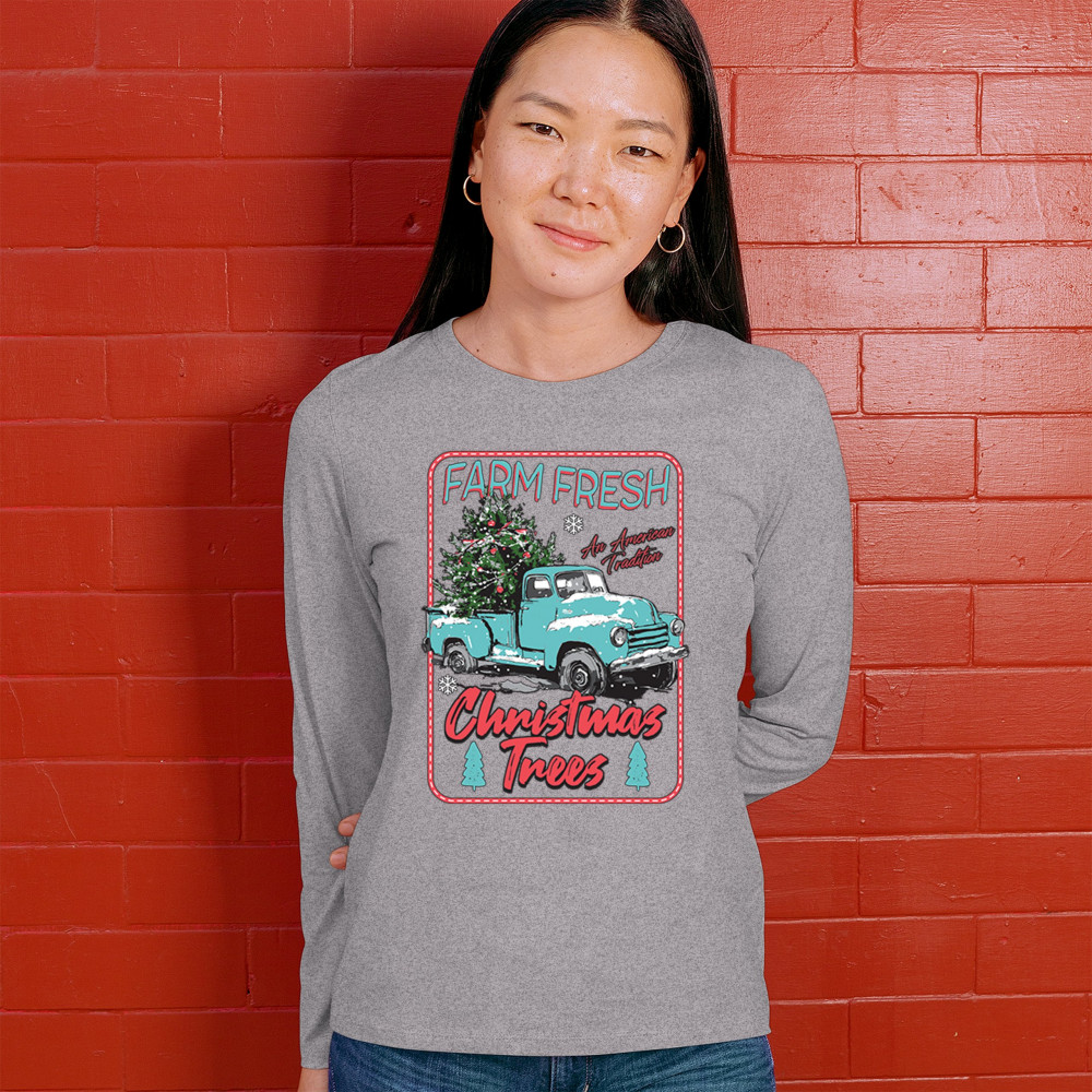 Celebrate the season with "Farm Fresh Christmas Trees" – a nostalgic design perfect for festive decor, matching outfits, and holiday gatherings.