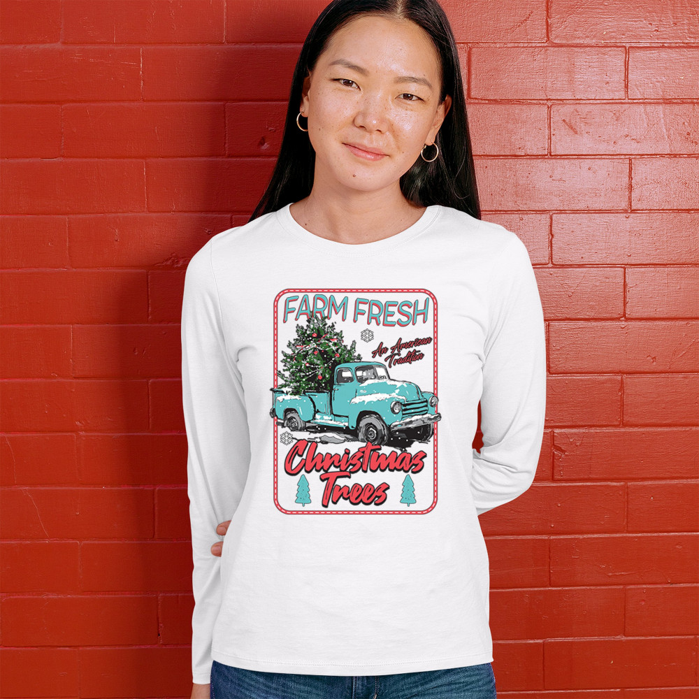 Celebrate the season with "Farm Fresh Christmas Trees" – a nostalgic design perfect for festive decor, matching outfits, and holiday gatherings.