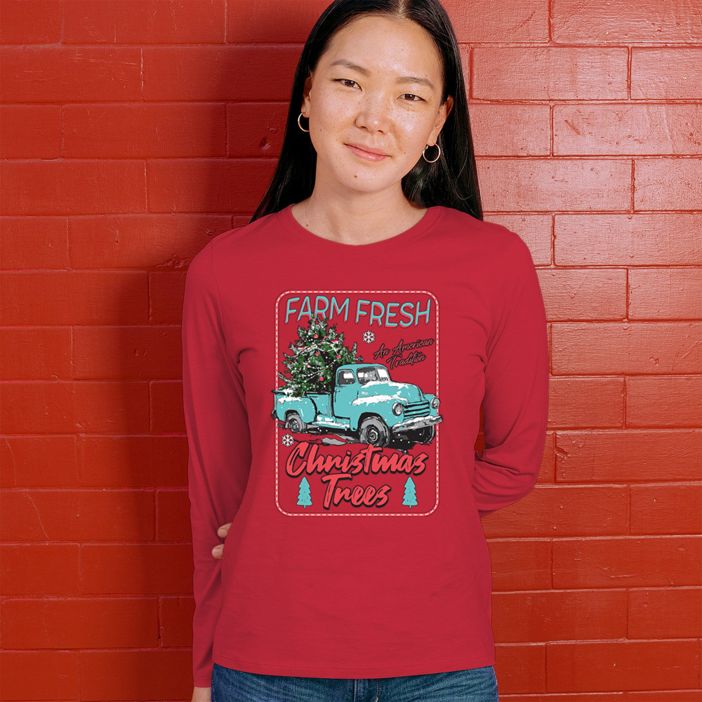 Celebrate the season with "Farm Fresh Christmas Trees" – a nostalgic design perfect for festive decor, matching outfits, and holiday gatherings.