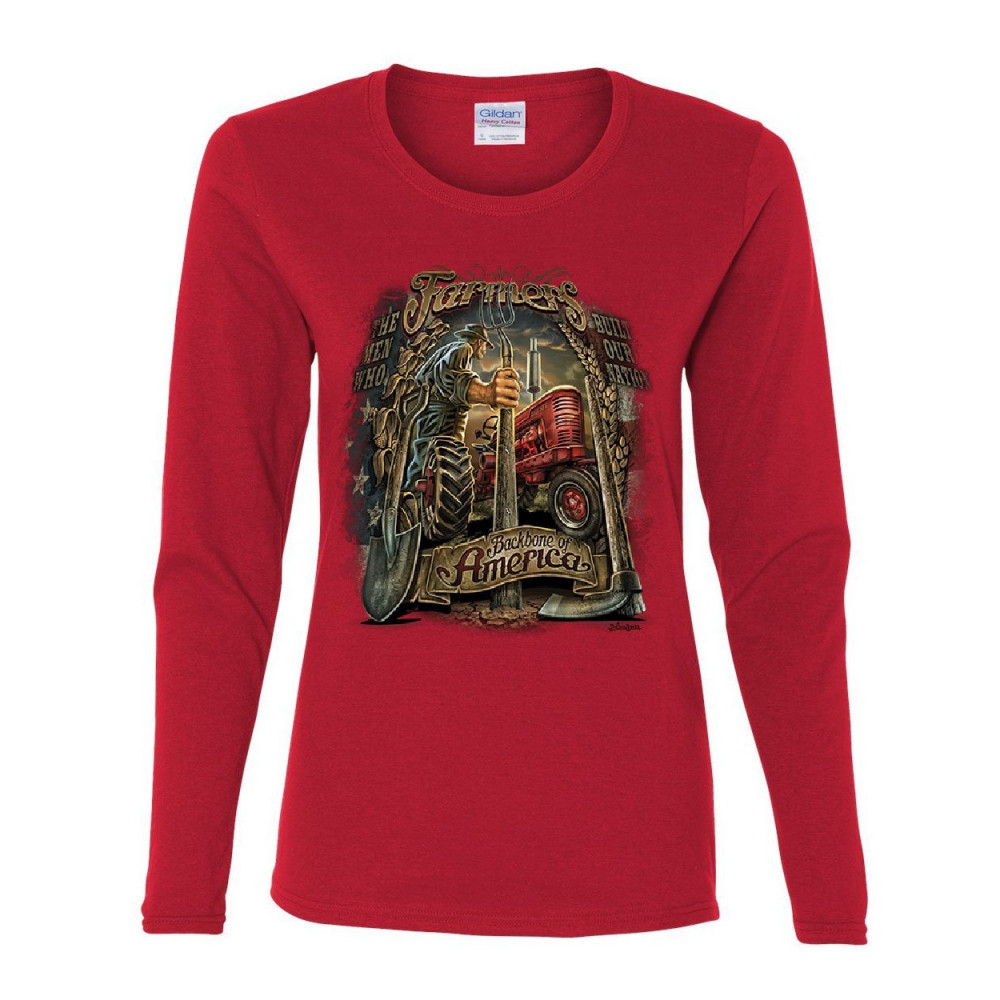 FARMERS BACKBONE OF AMERICA women's long sleeve tee countryside farming patriot red