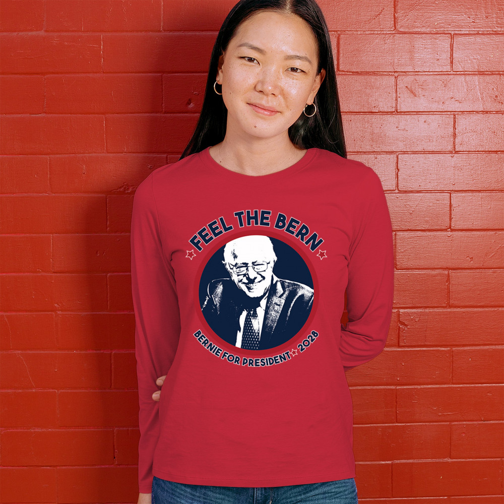Show your commitment to democratic reform with this "Feel the Bern – Bernie for President 2028" design. Featuring Bernie Sanders’ portrait and patriotic colors, it’s perfect for political events, marches, or campaign volunteering. Wear it with pride at rallies, protests, or voter registration drives to back the progressive movement.