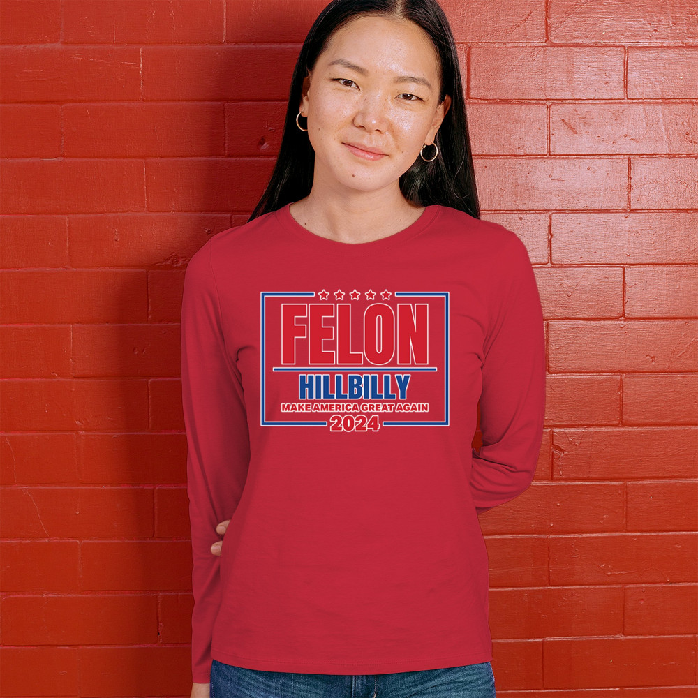 he "Felon Hillbilly 2024" design is perfect for Trump supporters, embodying conservative values and American pride.