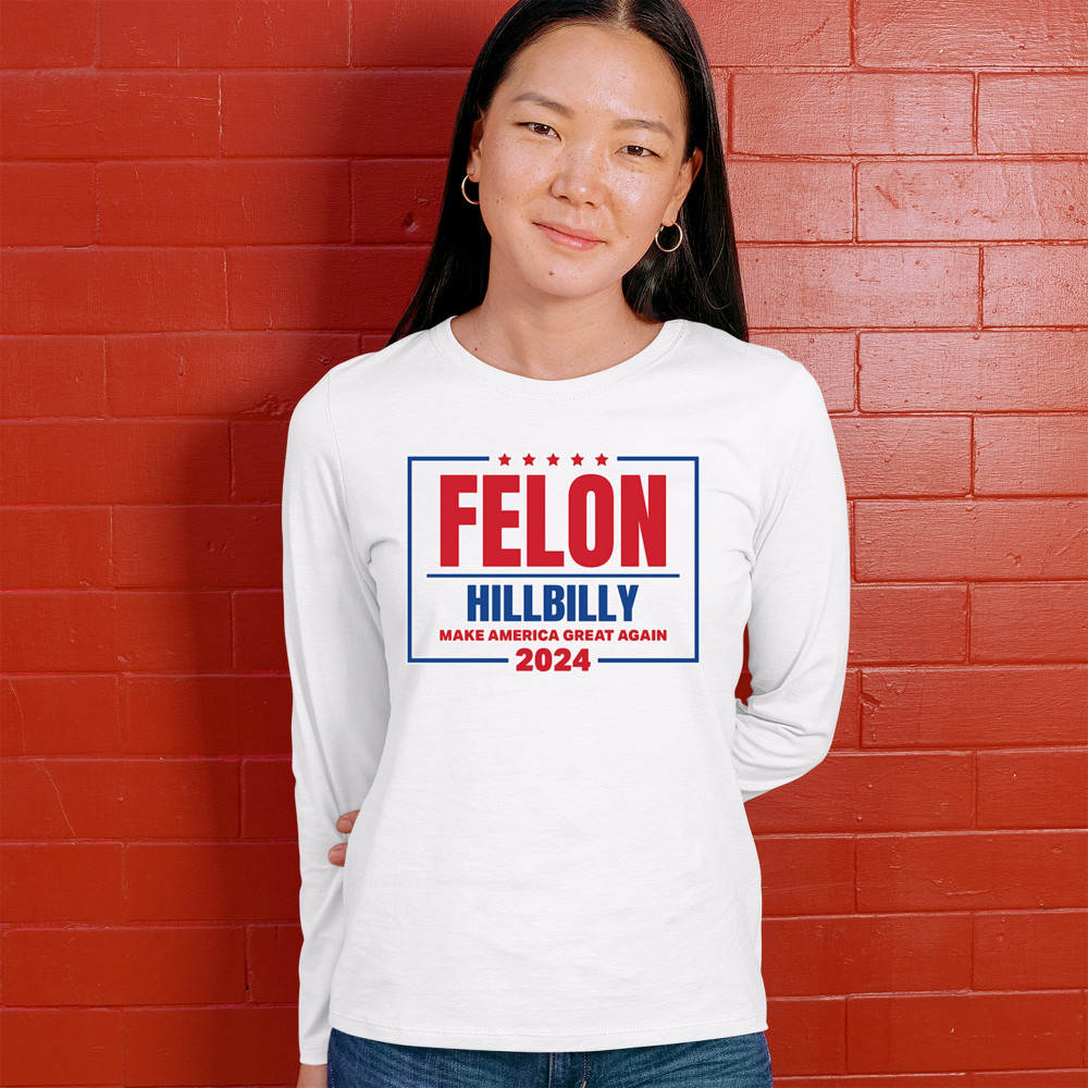 he "Felon Hillbilly 2024" design is perfect for Trump supporters, embodying conservative values and American pride.