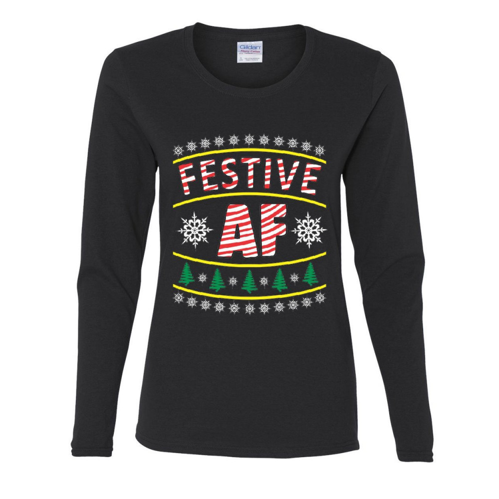 FESTIVE AF women's long sleeve tee merry christmas xmas funny holiday ho ho ho black