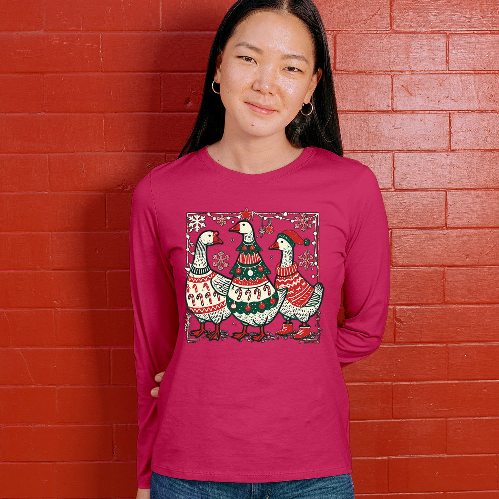 Festive goose Christmas design with playful holiday patterns, perfect for barnyard fans, cheerful gatherings, and fun seasonal celebrations.